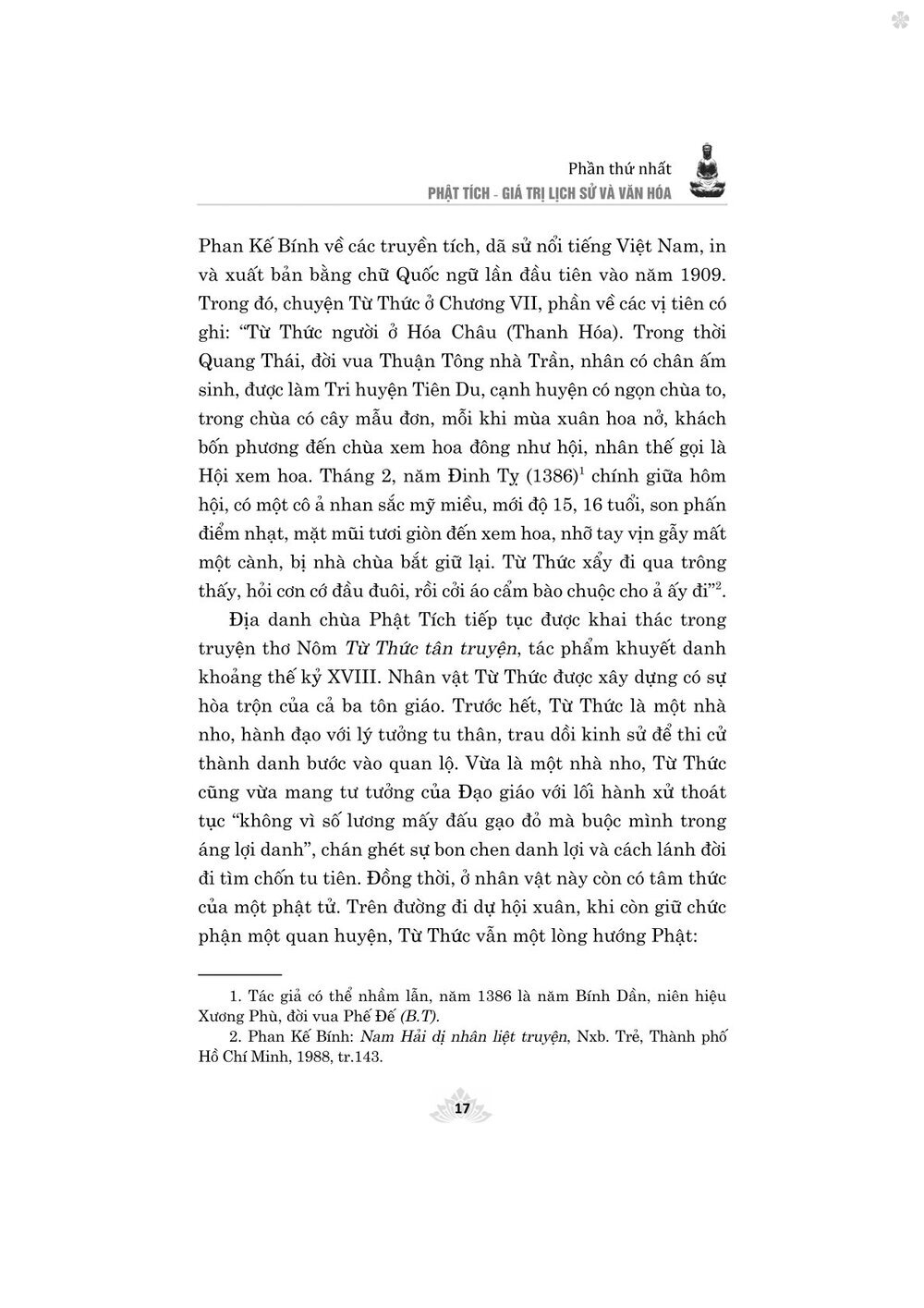 Để đáp ứng nhu cầu nghiên cứu, tìm hiểu của bạn đọc về giá trị lịch sử, văn hóa... của chùa Phật Tích, Nhà xuất bản Chính trị quốc gia Sự thật xuất bản cuốn sách Phật Tích - Trung tâm Phật giáo cổ nhất ở Việt Nam do Thượng tọa, TS. Thích Đức Thiện và ThS. Nguyễn Thái Bình đồng chủ biên.