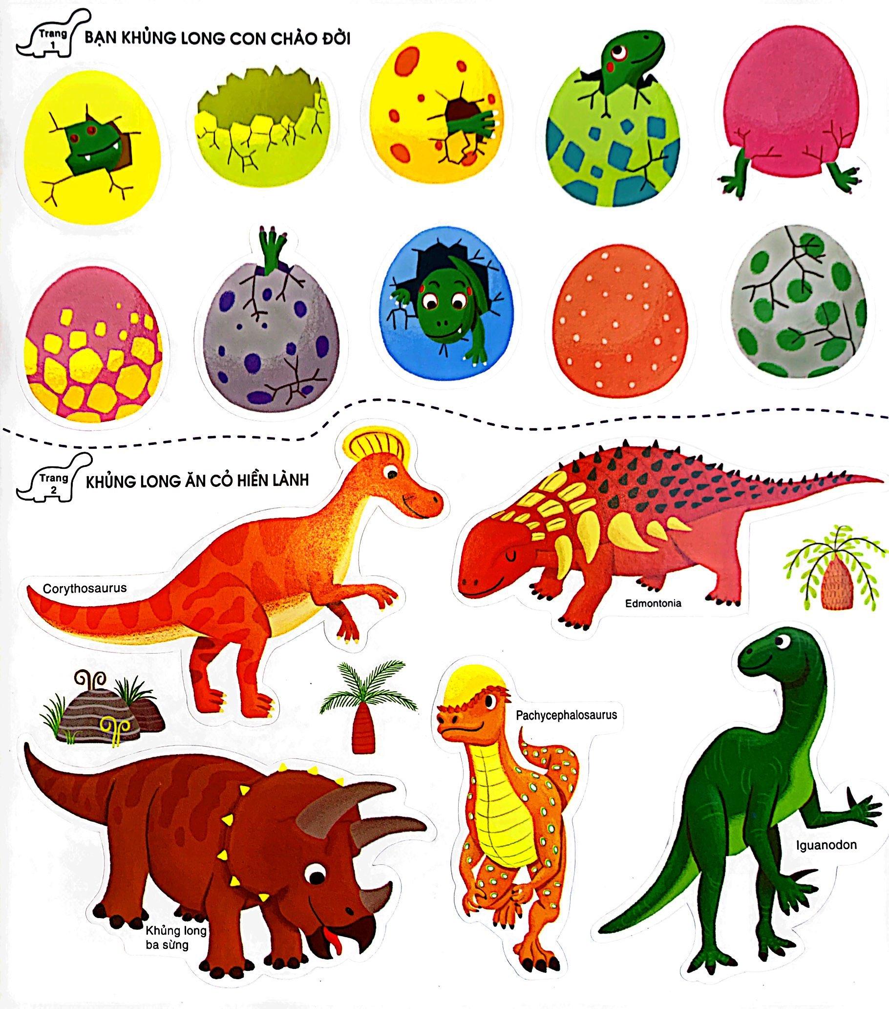 Khủng long là chủ đề yêu thích của rất nhiều bé trai. Trong cuốn sách này, bé sẽ có thể ngắm nhìn, tô màu các chú khủng long ăn thịt, tìm hiểu “v.ũ khí” đặc biệt của các chú khủng long ăn cỏ hiền lành, lại còn được tha hồ dán sticker nữa.
