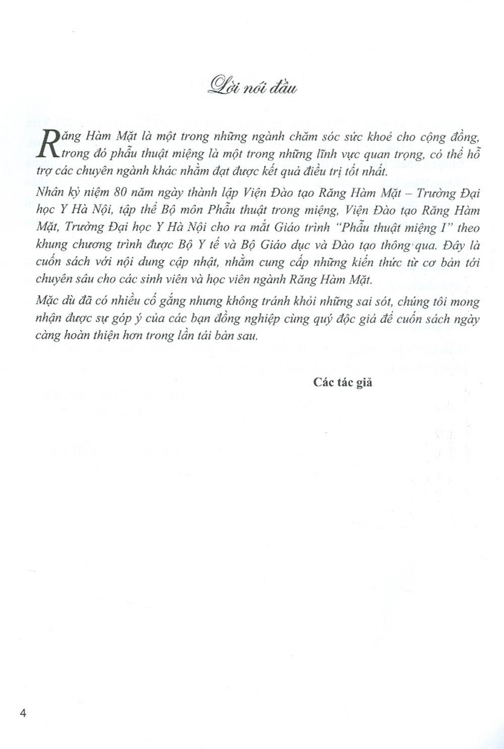 Chúng tôi viết cuốn sách này nhằm một phần đóng góp vào việc đào tạo đội ngũ bác sĩ Răng Hàm Mặt của đất nước ngày càng tốt hơn, phù hợp với yêu cầu cấp