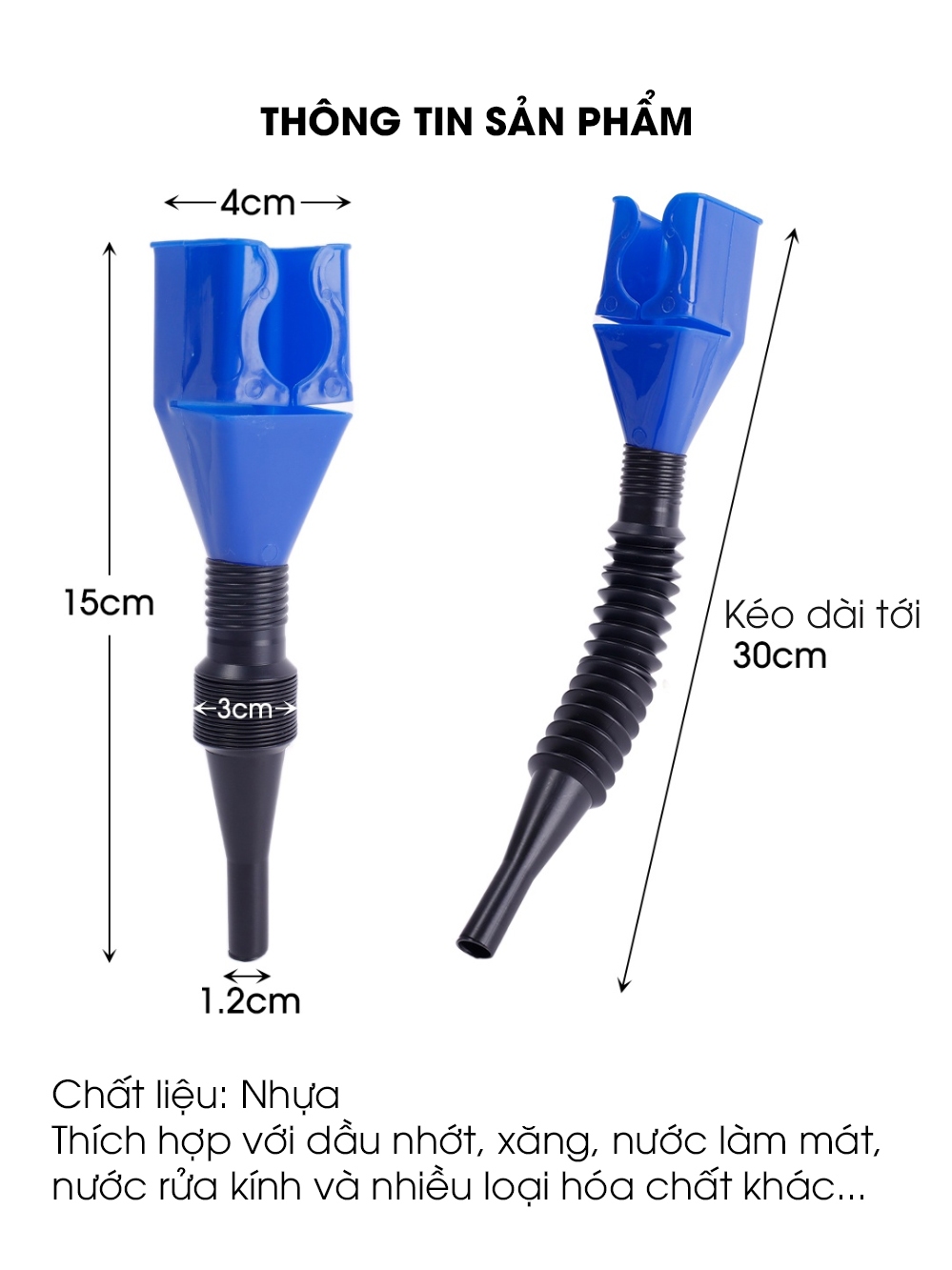 Phễu rót dầu nhớt, đổ xăng, nước làm mát cho ô tô Ưu điểm