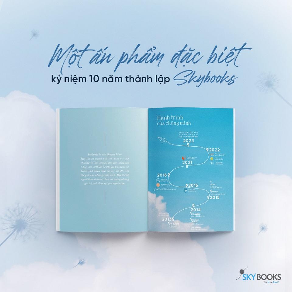 Để kỷ niệm hành trình 10 năm đầy thăng hoa này, chúng mình cho ra mắt cuốn sách “Phía trước là bầu trời” - một ấn phẩm đặc biệt của Skybooks với sự góp mặt của hơn 40 tác giả đã đồng hành cùng Skybooks trong thập kỷ vừa qua. Cảm ơn đội ngũ tác giả đã cùng Skybooks lan tỏa những giá trị tích cực qua từng trang viết từ ngày đầu thành lập đến nay.