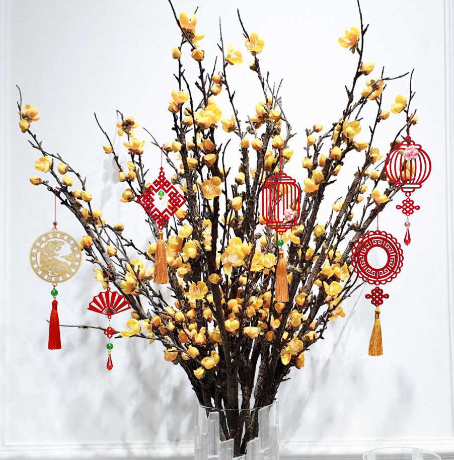 COMBO 6D – Bộ 6 phụ kiện dây treo trang trí cây mai, trang trí cây đào màu đỏ Thấy hoa mai hoa đào là thấy Tết. Tết năm nay sẽ đặc biệt hơn bao