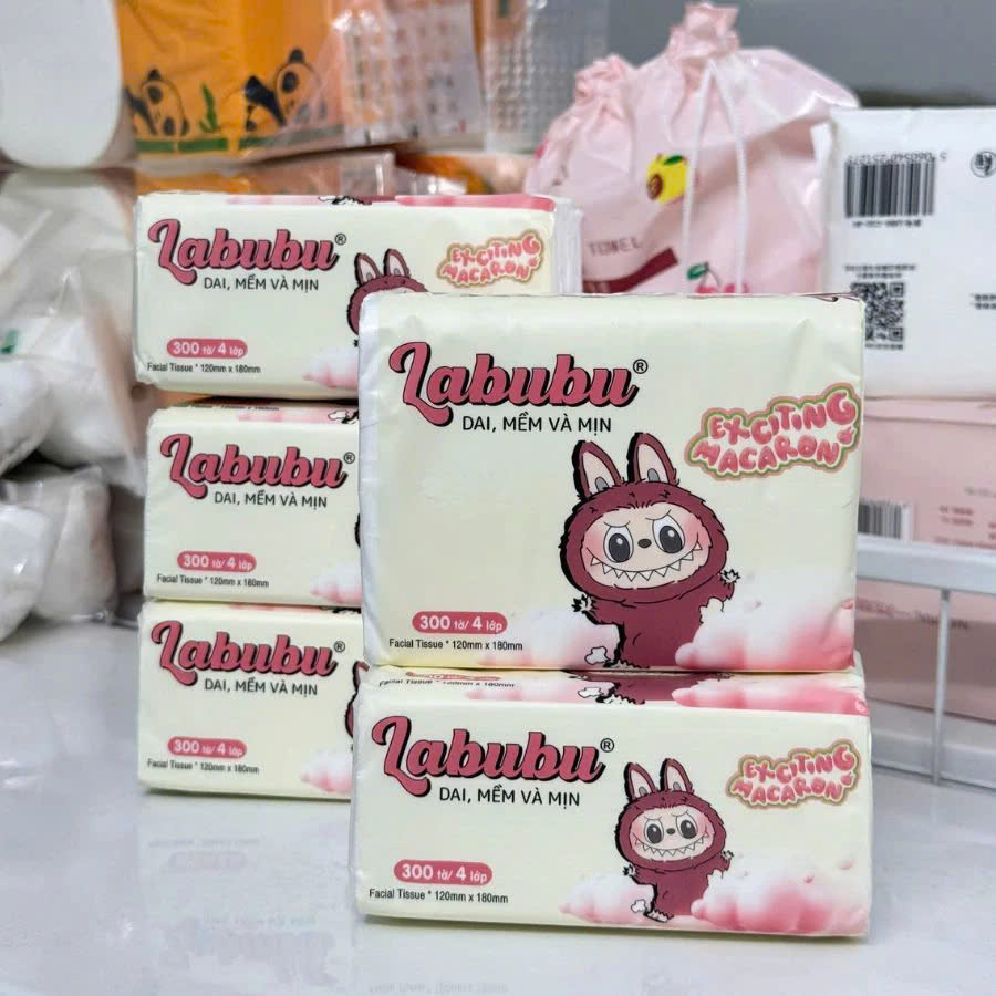 -Phụ kiện nhà bếp -Combo 10 bịch giấy ăn Labubu 300 tờ - 4 lớp / 1 gói siêu mềm mại siêu dai tiết kiệm và an toàn