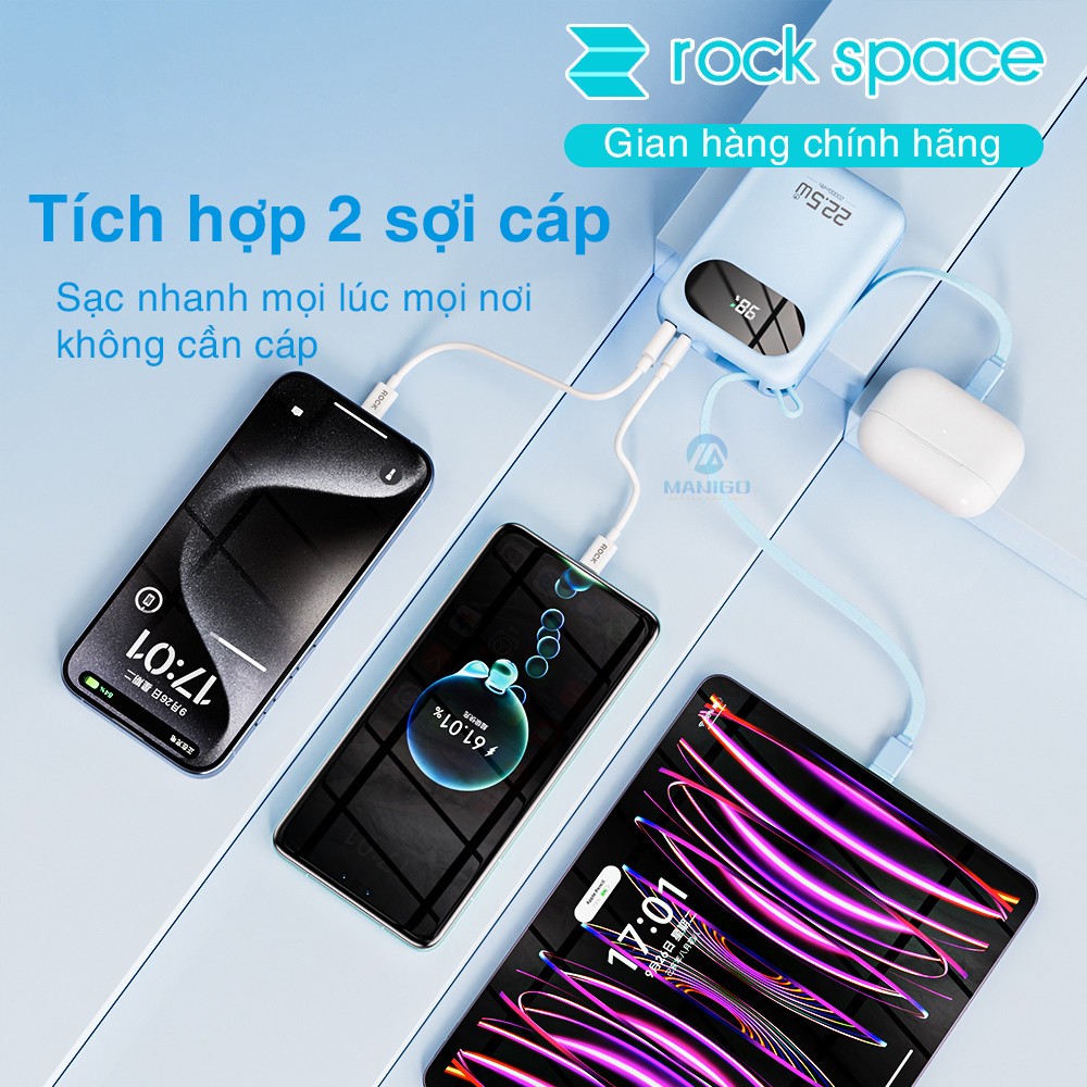 Tính năng Dung lượng 10.000mAh tương ứng 37Wh cung cấp đến nhiều giờ sử dụng cho các thiết bị điện tử 3 cổng sạc ra gồm 1 USB-A và 2 USB-C, thoải mái sạc 3