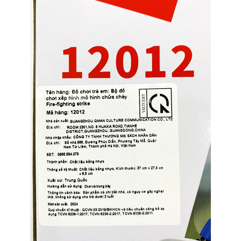 Thông tin sản phẩm: QMAN - Bộ đồ chơi xếp hình mô hình chữa cháy Fire-fighting strike 12012 - Kích thước: 37x27.5x6.5cm - Chất liệu: Nhựa ABS - Thương hiệu: QMAN