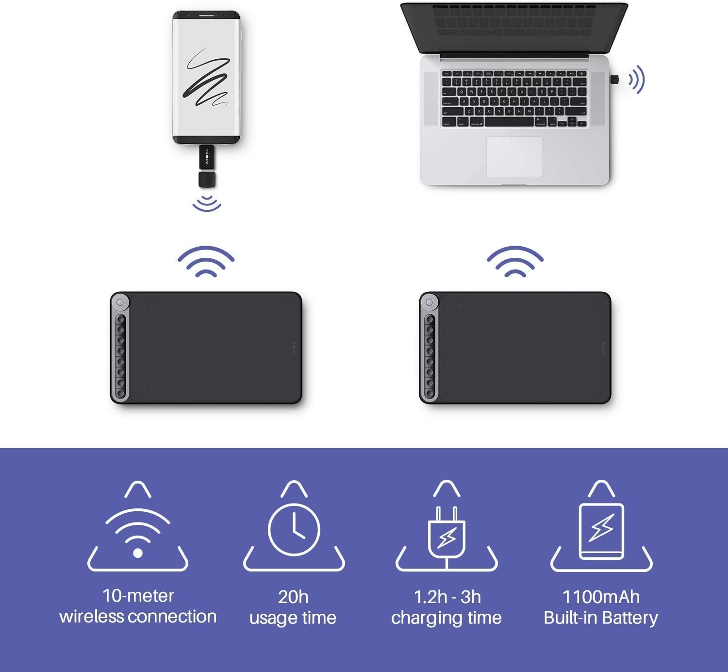 ✨Quà Tặng Kèm Trị Giá 399K - Bảng Vẽ Điện Tử HUION iQ620M Kết Nối Không Dây Wireless 2.4G(hỗ trợ Android và máy tính) - Hàng Chính Hãng Huionl Dial Q620M Graphic Drawing Tablet 266PPS Wireless Connection Digital Pen Tablet with Dial for PC and Android