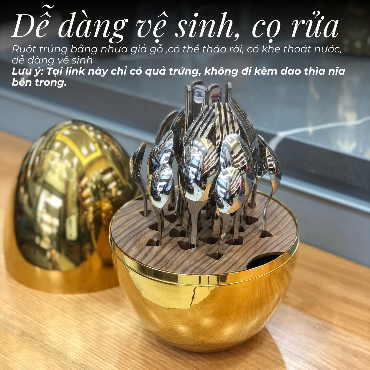 ✨Quả trứng ABS/Inox 304 DandiHome cao cấp đựng dao, thìa, nĩa, decor bàn tiệc, phòng bếp (không kèm dao thìa nĩa)