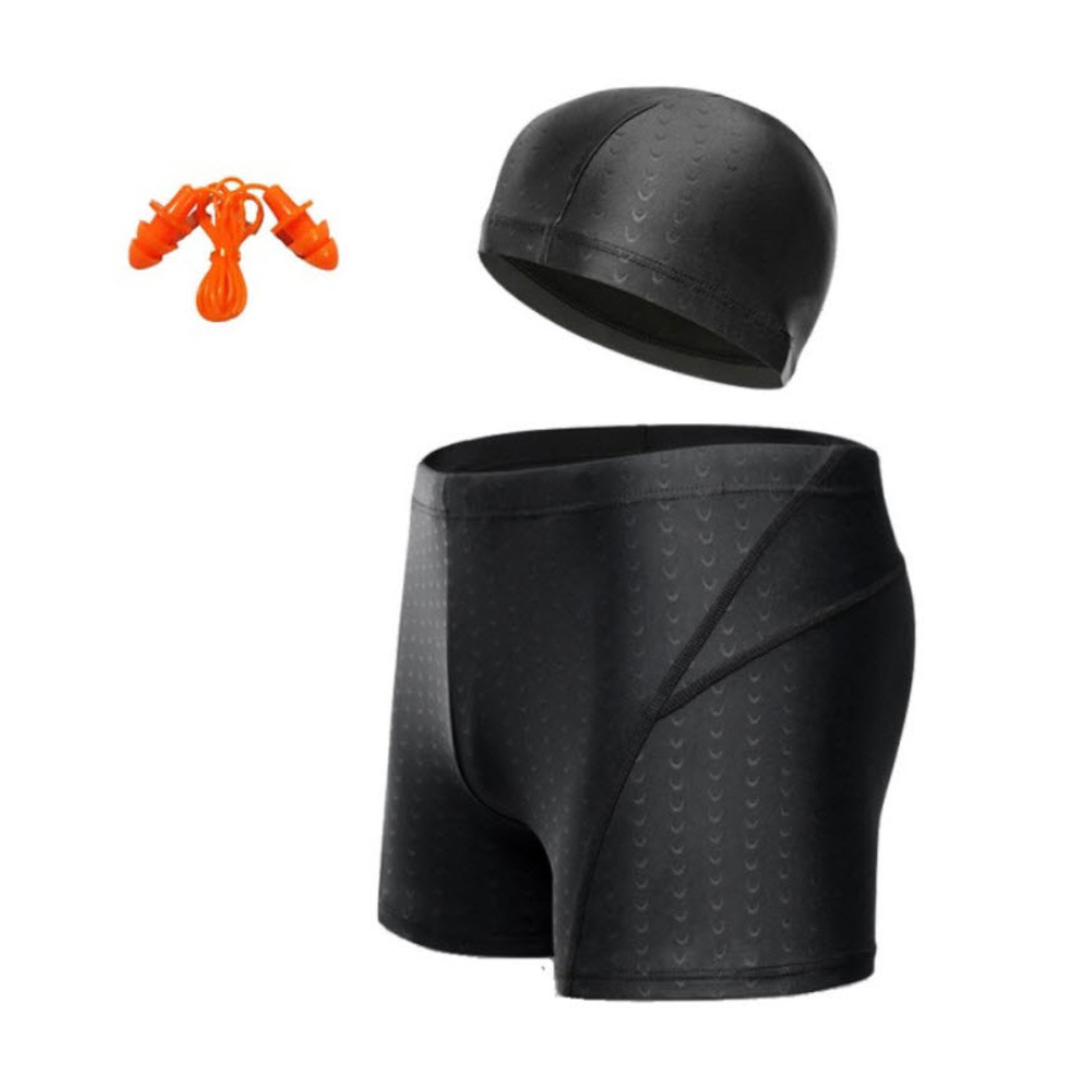 Bộ sản phẩm gồm quần bơi , mũ bơi , bịt tai silicon .