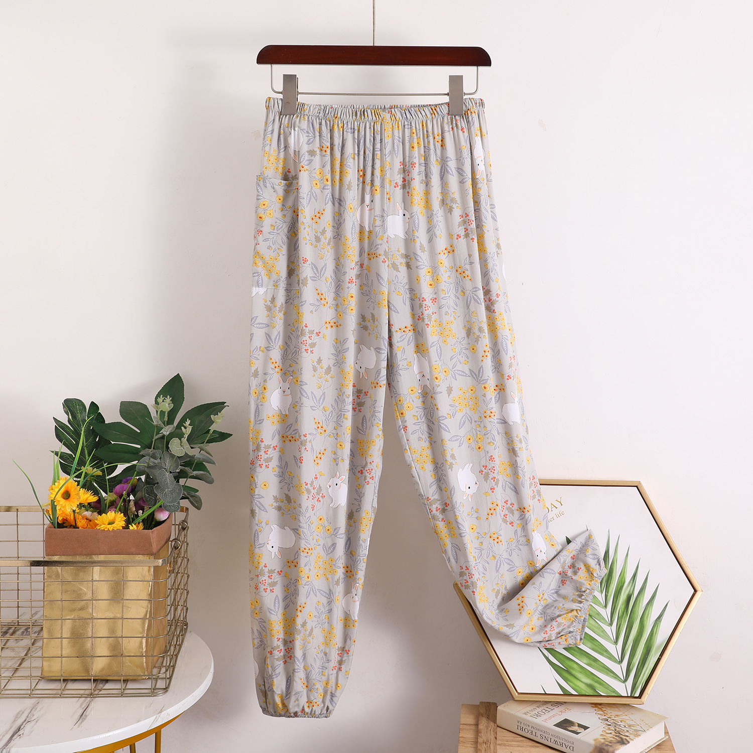Mua tại TiktokQuần dài nữ bo gấu chất liệu vải lanh thoải mái, thoáng mát, nhiều họa tiết