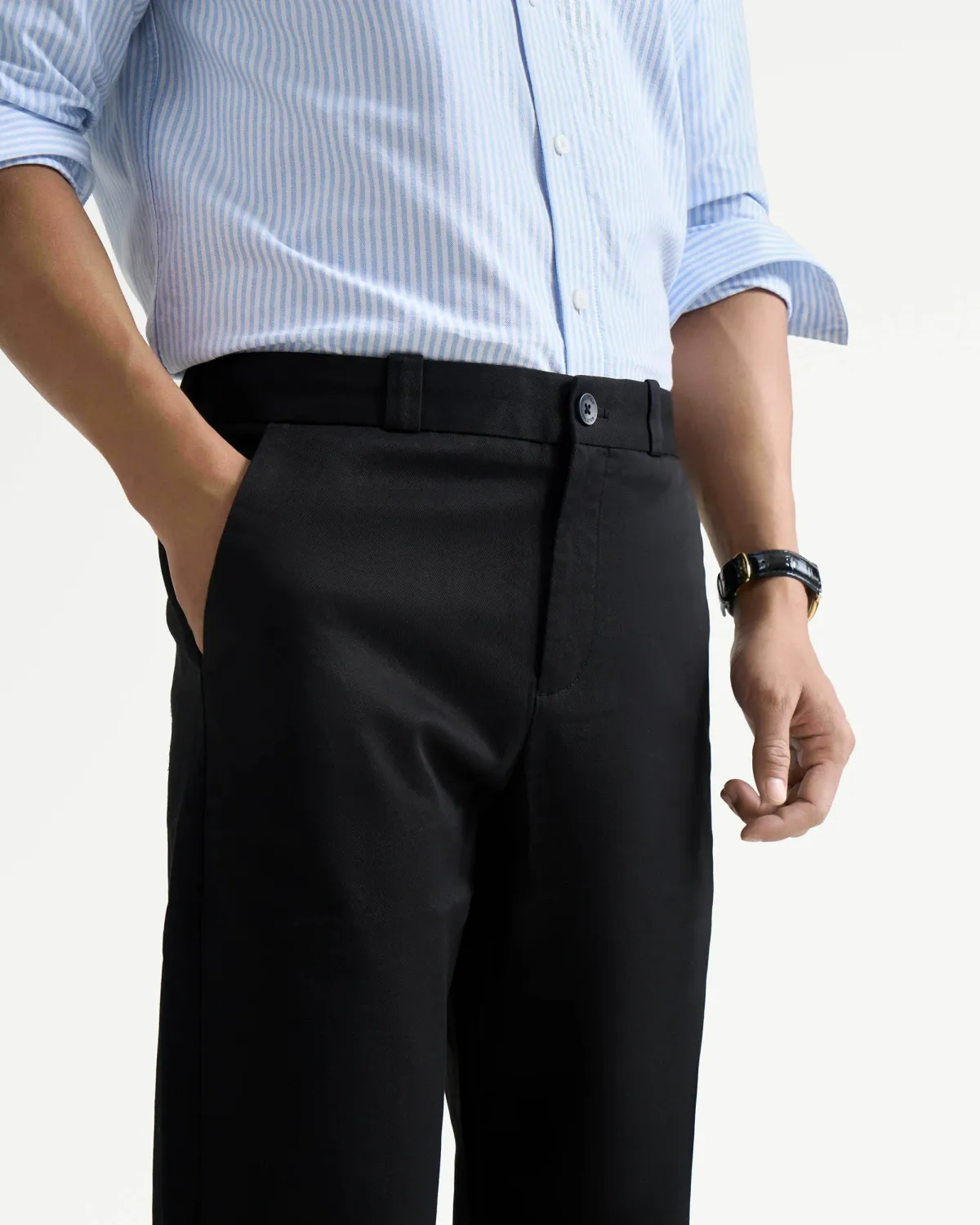 Quần kaki nam màu đen form slimcrop - RT 10S25PCA017 | ROUTINE CÀ MAU Đặc điểm nổi bật Form : Slim cropped Fabric : Cotton Spandex Gender: Nam Collection: Essential 25 Sản phẩm này là