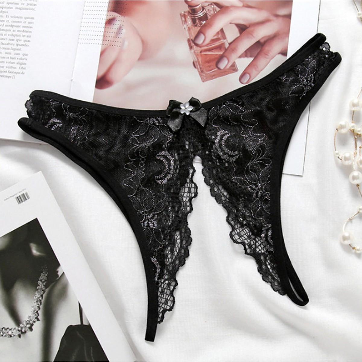 ✨Quần lót nữ lọt khe ren phối hoa hở mông hở đũng - 1 cái màu đen