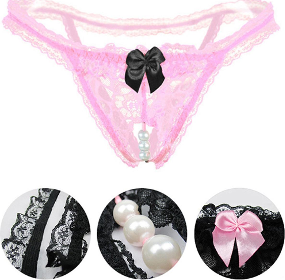 ✨Quần lót nữ ren lọt khe đính nơ quyễn rũ - Hồng
