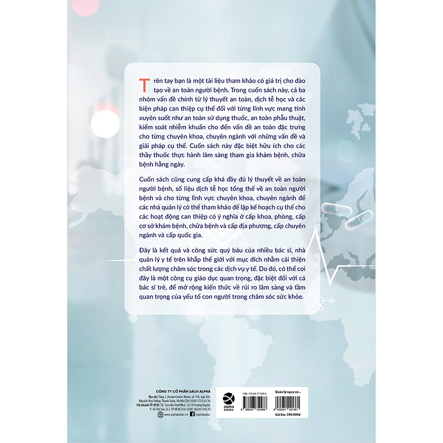 Chính vì vậy, Đại hội đồng Y tế Thế giới đã chọn ngày 17 tháng 9 hằng năm là Ngày An toàn Người bệnh Thế giới, nhằm kêu gọi các quốc gia dành sự quan tâm và có những hành động cụ thể để giảm thiểu sự cố y khoa, hạn chế các tổn hại do chăm sóc y tế đối với người bệnh. Quản lý nguy cơ lâm sàng và An toàn người bệnh là một tài liệu tham khảo vô cùng giá trị về an toàn người bệnh. Trong cuốn sách này, cả ba nhóm vấn đề chính: từ lý thuyết an toàn, dịch tễ học và các biện pháp can thiệp cụ thể đối với từng lĩnh vực mang tính xuyên suốt như an toàn sử dụng thuốc, an toàn phẫu thuật, kiểm soát nhiễm khuẩn cho đến vấn đề an toàn đặc trưng cho từng chuyên khoa, chuyên ngành với những vấn đề và giải pháp cụ thể. Cuốn sách này đặc biệt hữu ích cho các nhân viên y tế trực tiếp tham gia khám, chữa bệnh hằng ngày.