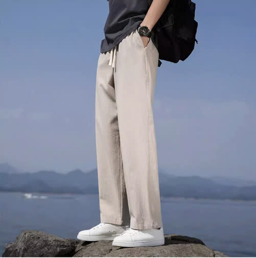 ✨Quần nam ống rộng chất linen, bản eo bo chun kèm dây rút dễ mặc, che khuyết điểm tốt, thời trang trẻ