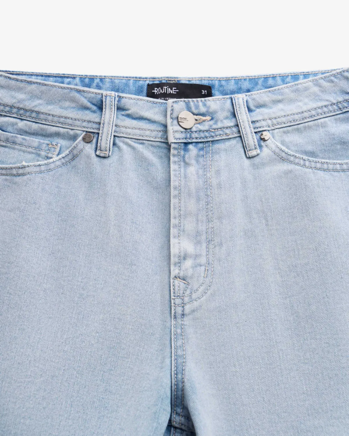 Quần short jean nam màu Xanh nhạt Form Straight - RT 10S25DPS001 | ROUTINE CÀ MAU Đặc điểm nổi bật Form : Straight Fabric : Denim Gender: Nam Collection: Essential 25 Sản phẩm này là