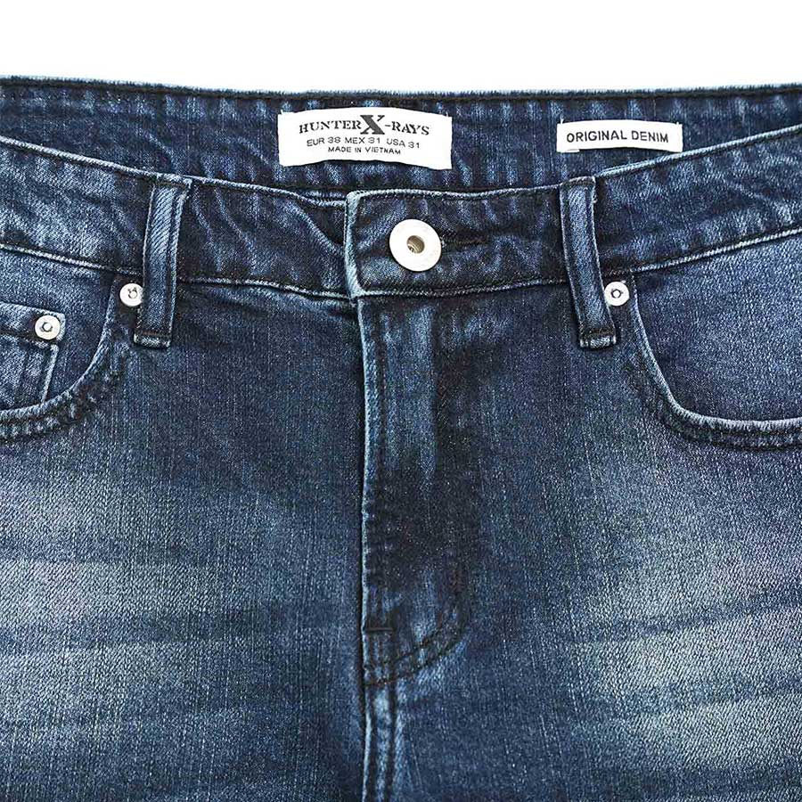 Quần Short Jeans Nam Cao Cấp HUNTER X-RAYS Form Slimfit Thun Mài Sờn Màu Xanh Đậm S36 Đặc điểm nổi bật: Nút được đúc nguyên khối bằng đồng và nổi bật thương hiệu HUNTER X-RAYS