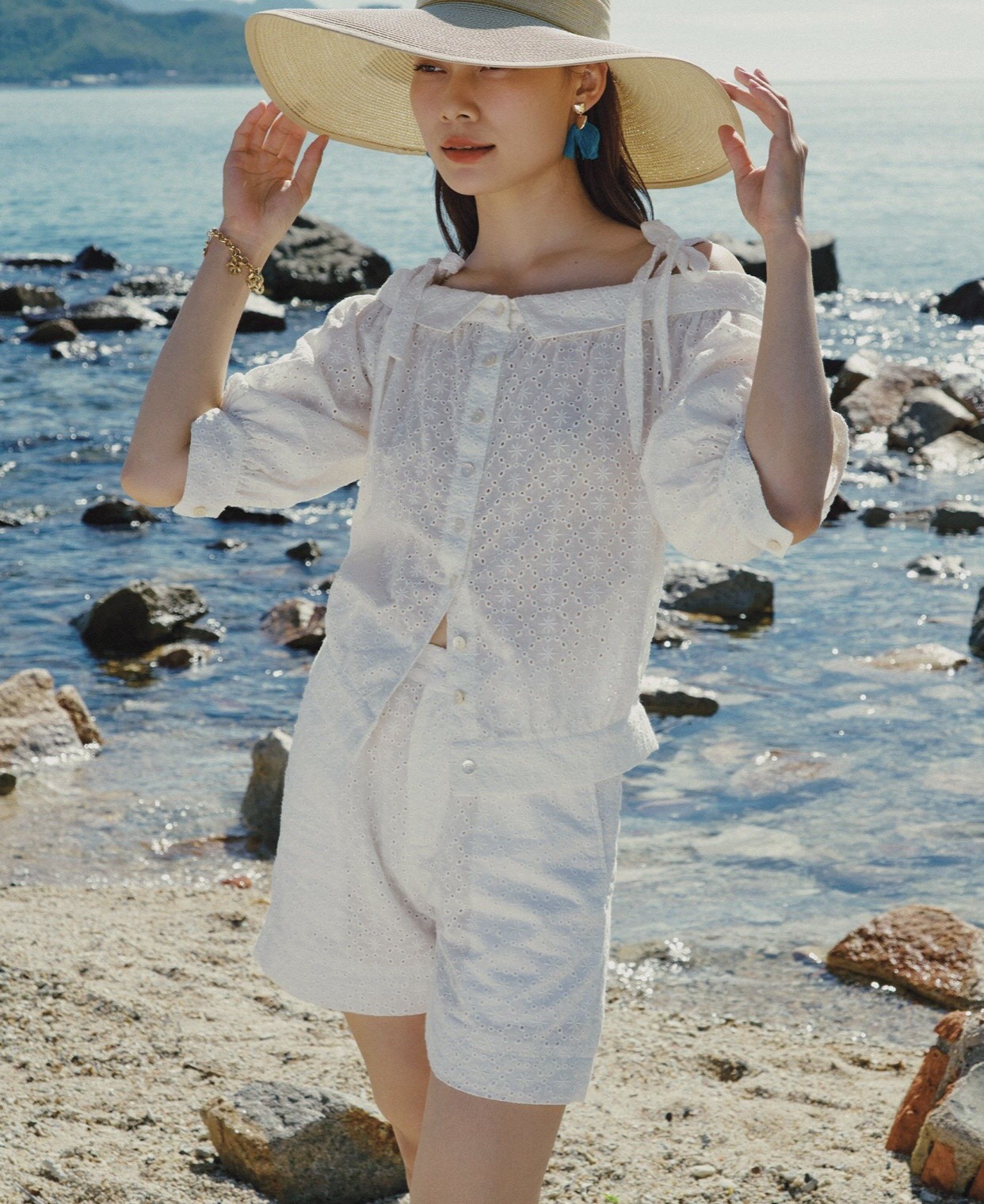 Quần đùi LMcation Laura có lưng thun co dãn thoải mái và viền hoa tinh tế. Dễ dàng kết hợp với áo kiểu các loại.   LMinimal - BST Siêu Tiết Kiệm tập trung vào
