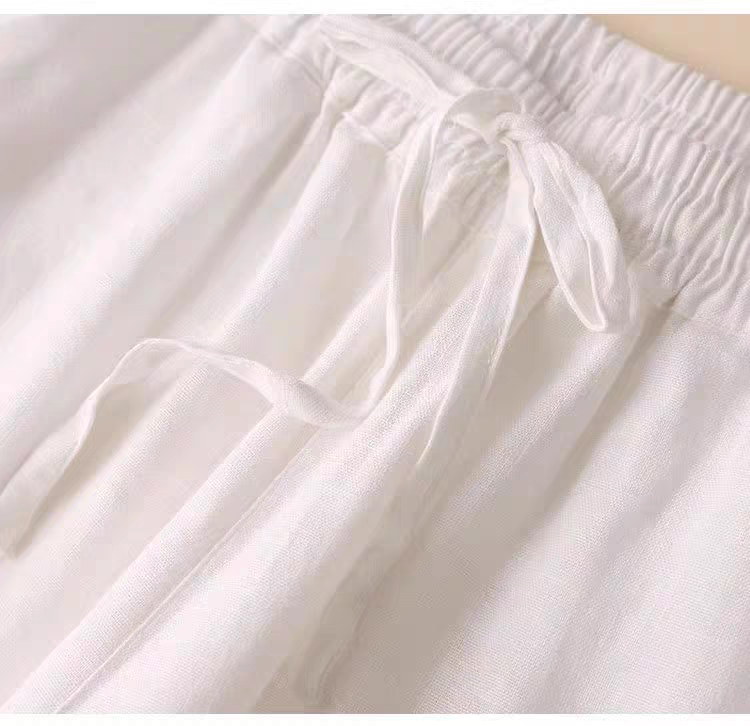 THÔNG TIN SẢN PHẨM: - Sản phẩm: Quần dài nữ - Chất liệu: Linen - Đặc điểm: Ống rộng, Đũng ngắn, Lưng thun - Kích thước: M, L, XL, 2XL - Màu sắc: Trắng,Đen,Be,Muối