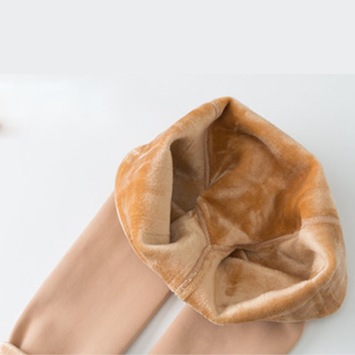 Chiều dài quần khi chưa co giãn:91cm Rộng bụng khi chưa co giãn:52cm Màu sắc:Màu da Chất liệu:Nhung trơn Thiết kế quần liền bàn chân ấm áp,tiện dụng Bên trong lót lông ấm áp thích hợp cho những ngày rét lạnh Giới tính:nữ