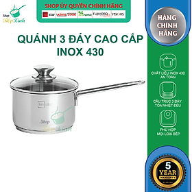 ✨Quánh bột cháo 3 đáy inox 430 Fivestar Standard nắp kính dùng bếp từ (14cm)