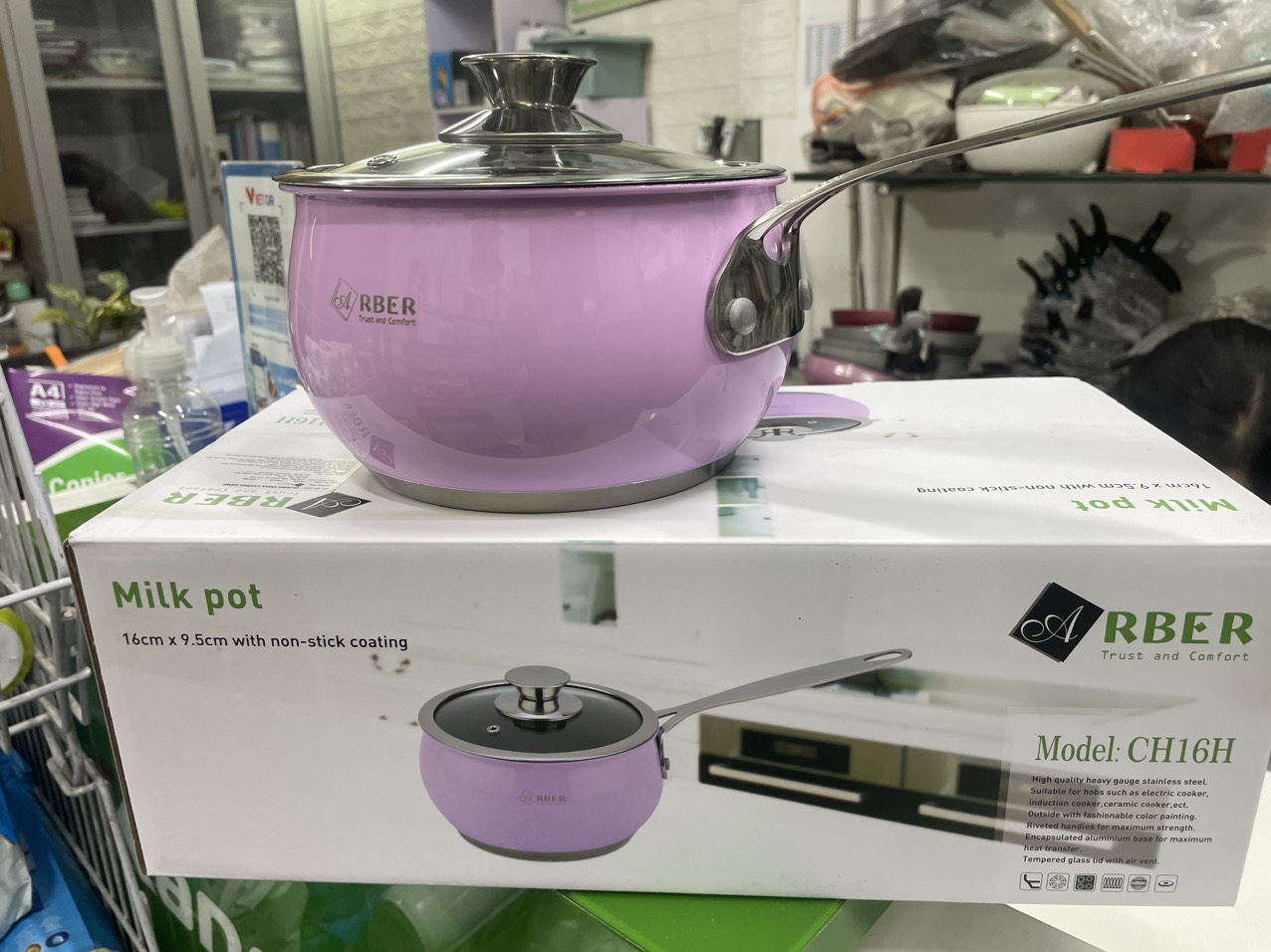 Quánh inox chống dính Arber đường kính 16cm , cao 9.5cm , 3 đáy Quánh mới mua về nên rửa sạch bằng nước rửa bát và lau khô. Tôi dầu đẻ bảo vệ lớp chống dính Vệ sinh quánh sau sử dụng đúng cách, khôn...