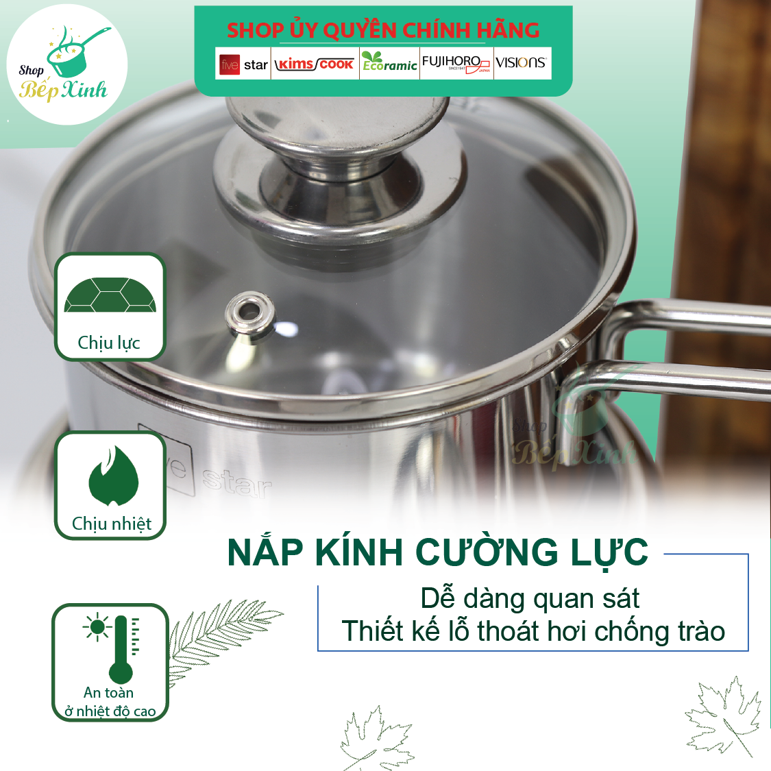 Quánh nấu bột Inox 3 đáy đường kính 14cm Fivestar nắp kính dùng bếp từ - Zalo 0816 505 655