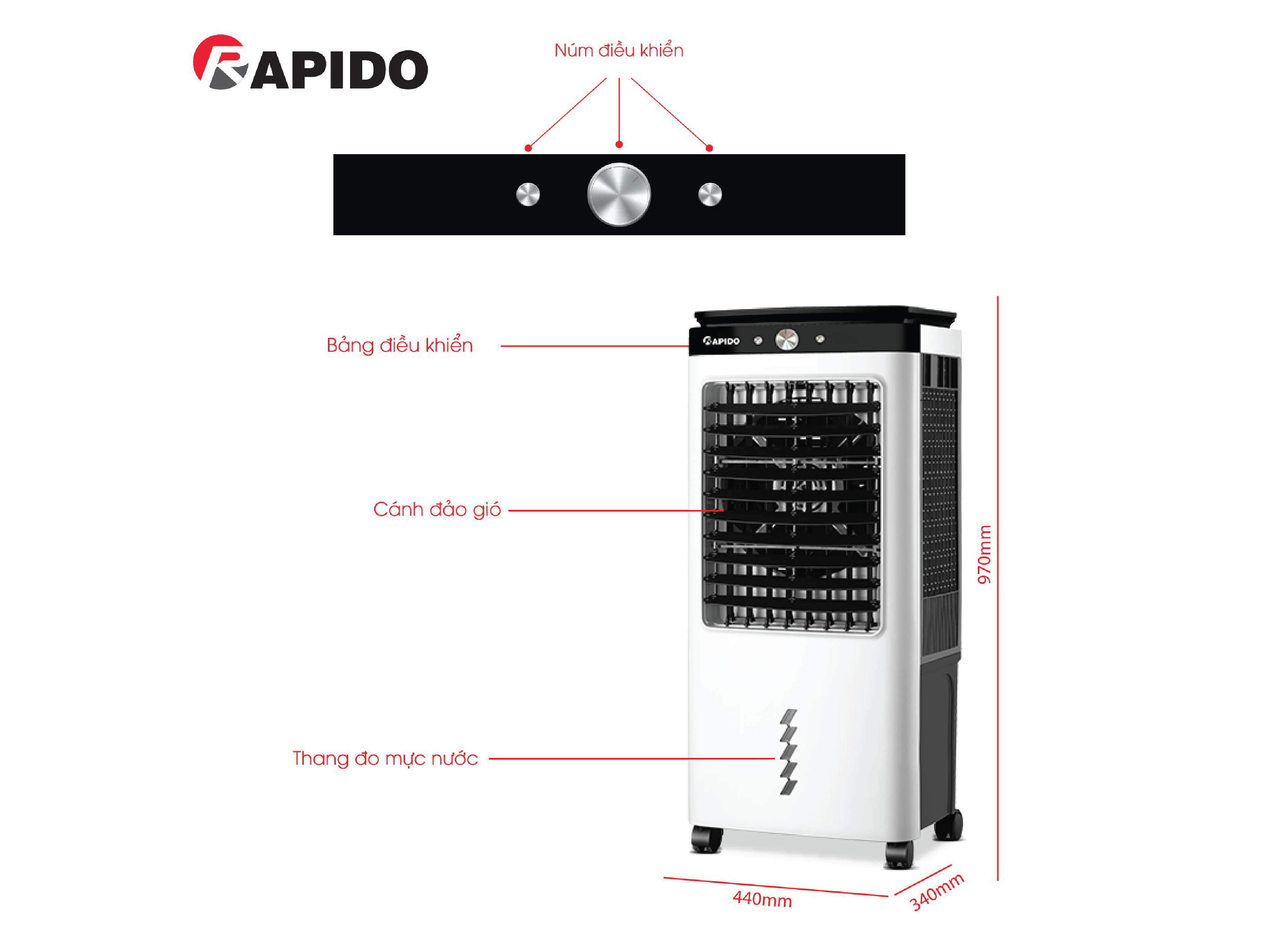 Quạt điều hòa không khí Rapido Everest thiết kế hiện đại sang trọng Với thiết kế hiện đại, cải tiến thêm nhiều chức năng như lọc không khí, thay đổi vị trí điều khiển,…. sẽ