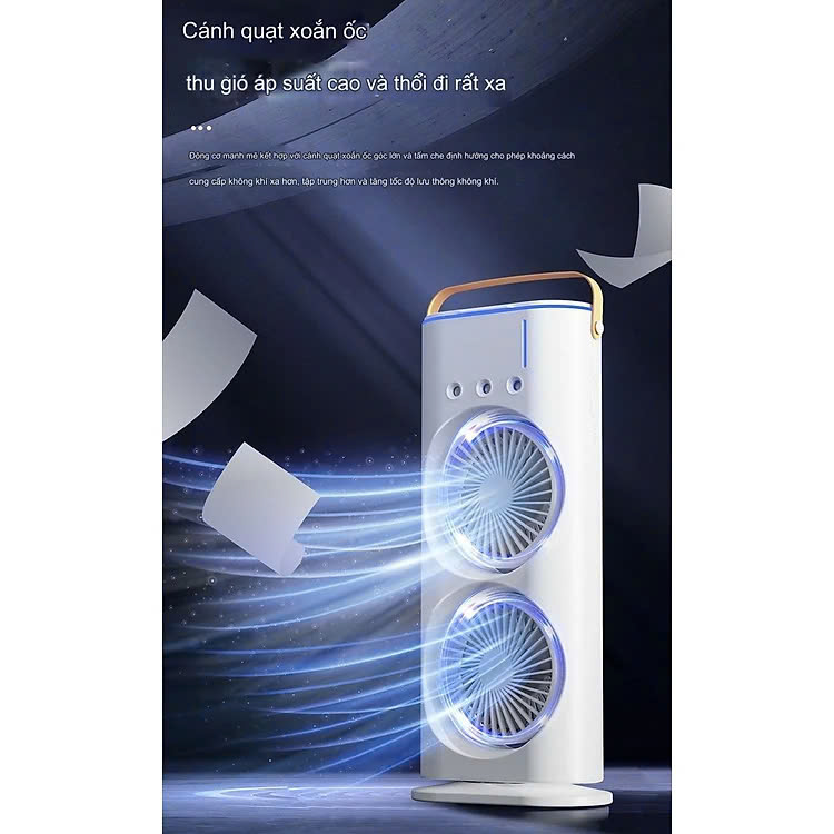 Quạt điều hoà hơi nước mini cool fan, quạt hơi nước làm mát phun sương để bàn 3 chế độ gió, dung tích bình lớn tích hợp đèn led, quạt phun sương mini để bàn