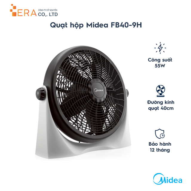 Quạt hộp Midea FB40-9H trang bị 5 cánh quạt với đường kính 40cm mỗi cánh cùng với công suất hoạt động 55W, giúp đem đến hiệu quả làm mát rộng. Hơn nữa, quạt còn thiết kế nan gió có khả năng đảo chiều 360 độ, giúp luồng gió mát lan tỏa đều ra các hướng đến nhiều vị trí khác nhau trong phòng. 3 tốc độ gió trang bị sẵn giúp người dùng lựa chọn theo từng nhu cầu khác nhau.