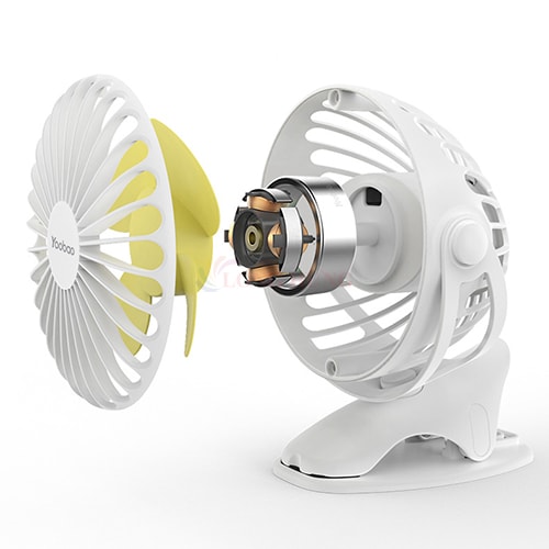 - Quạt kẹp Yoobao Y-F04 với thiết kế nhiều màu sắc phù hợp sở thích của từng các nhân, lồng quạt và thân được làm từ nhựa ABS bền đẹp. Quạt có thể để trên mọi vị trí từ mặt bàn, kẹp chắc rìa bàn, ghế, xe nô để làm mát dễ dàng mà không vướng víu, phù hợp mang đi di chuyển xa và liên tục.
