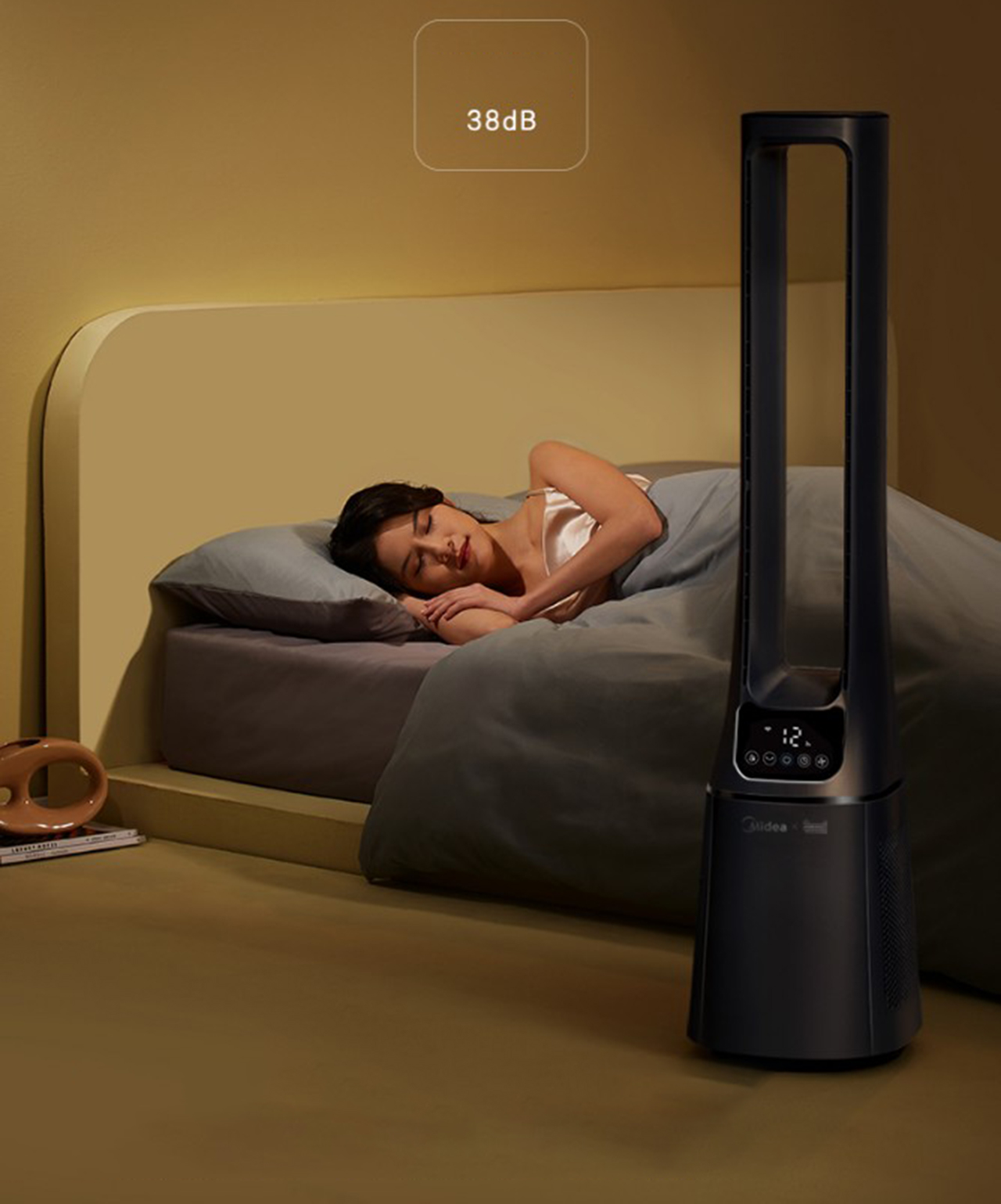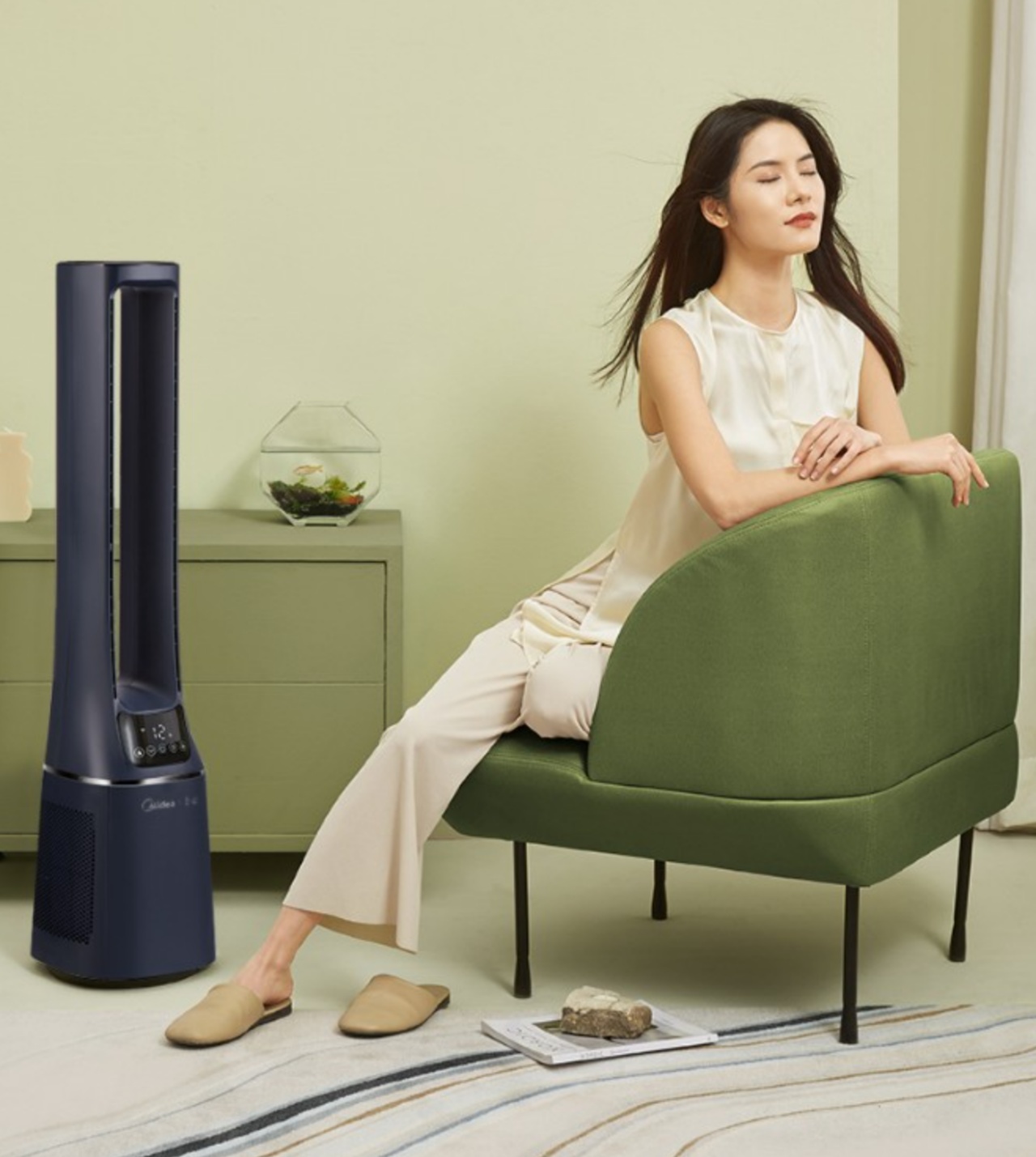 Quạt không cánh Midea AMS150E-TM, tích hợp chức năng lọc không khí được điều khiễn bằng ứng dụng thông minh.