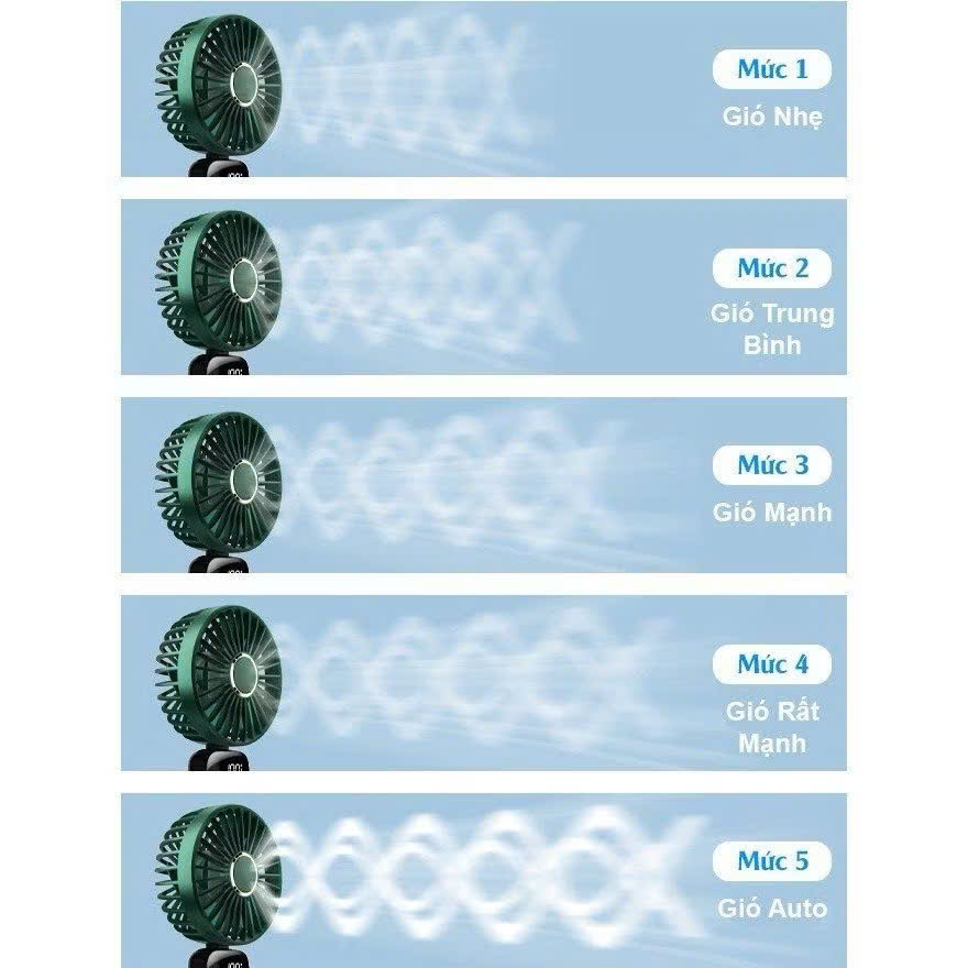 - Dung lượng pin lớn: Với pin sạc 10.000mAh, quạt có thể sử dụng liên tục từ 3 đến 12 giờ, tùy vào cấp độ gió, đảm bảo sử dụng lâu dài mà không cần lo lắng về việc sạc lại thường xuyên.
