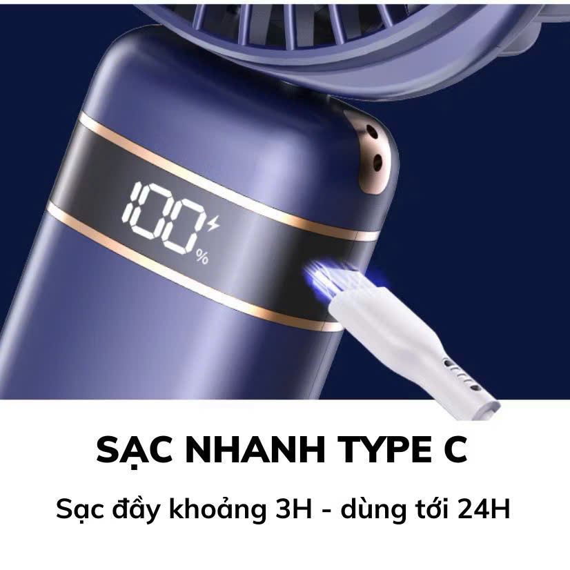 Quạt cầm tay 100 cấp độ gió, Quạt tích điện HSON pin cao 5000 MAH hiển thị đèn led, có thể sạc lại