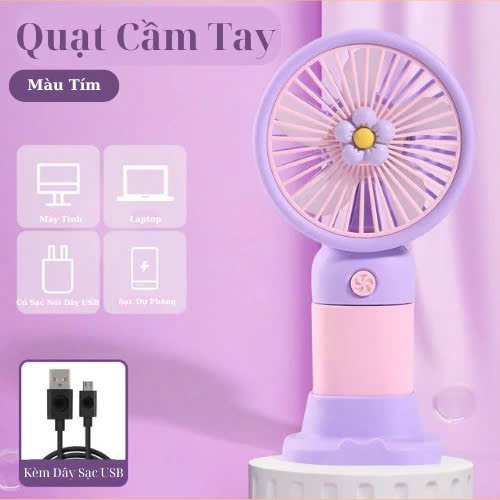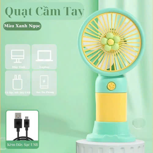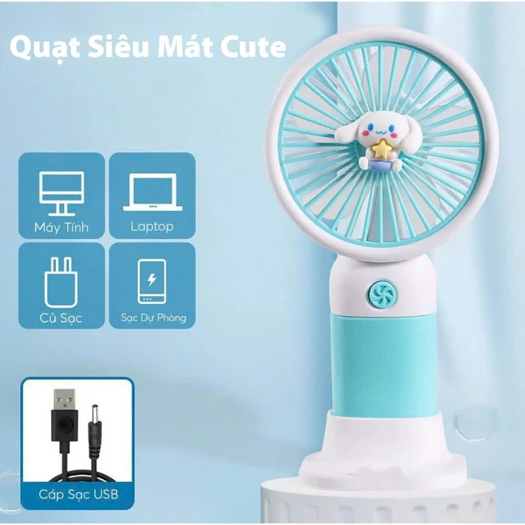 - Quạt họa tiết dễ thương. Phù hợp: khi đi dã ngoại, đi làm, đi học. Bộ sản phẩm bao gồm: 1 quạt cầm tay mini 1 dây cáp sạc