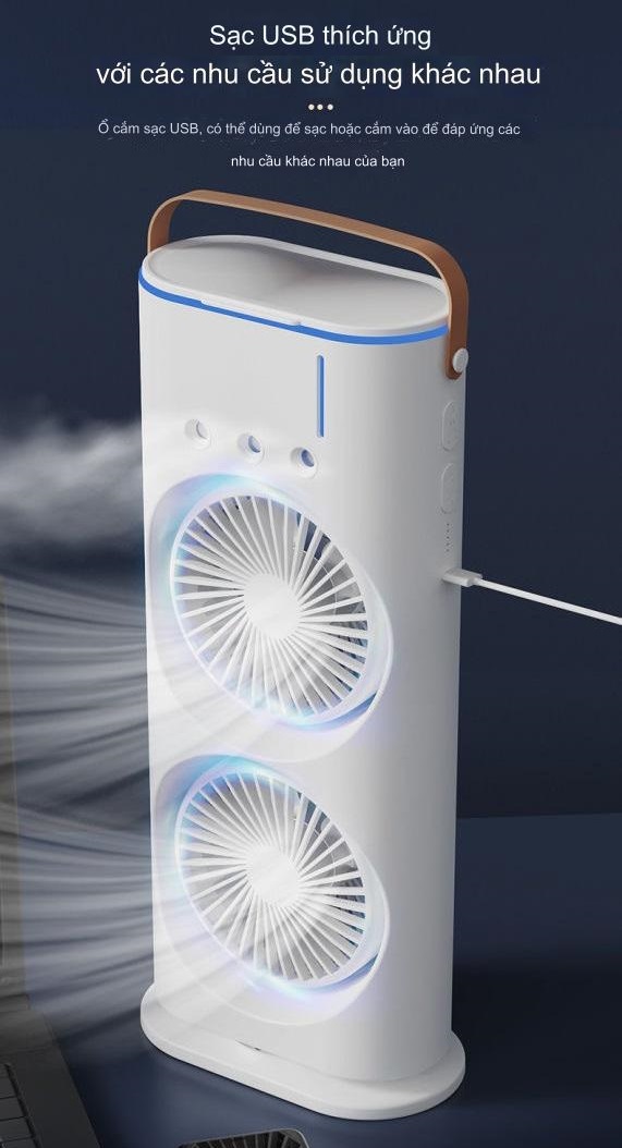 QUẠT HƠI NƯỚC QUẠT PHUN SƯƠNG MINI Quạt phun sương mini, Quạt Hơi Nước Tích Hợp Đèn LED Với 2 Cánh Gió, 3 Đầu Phun Sương Sử Dụng Cổng Sạc Type C Tiện Dụng