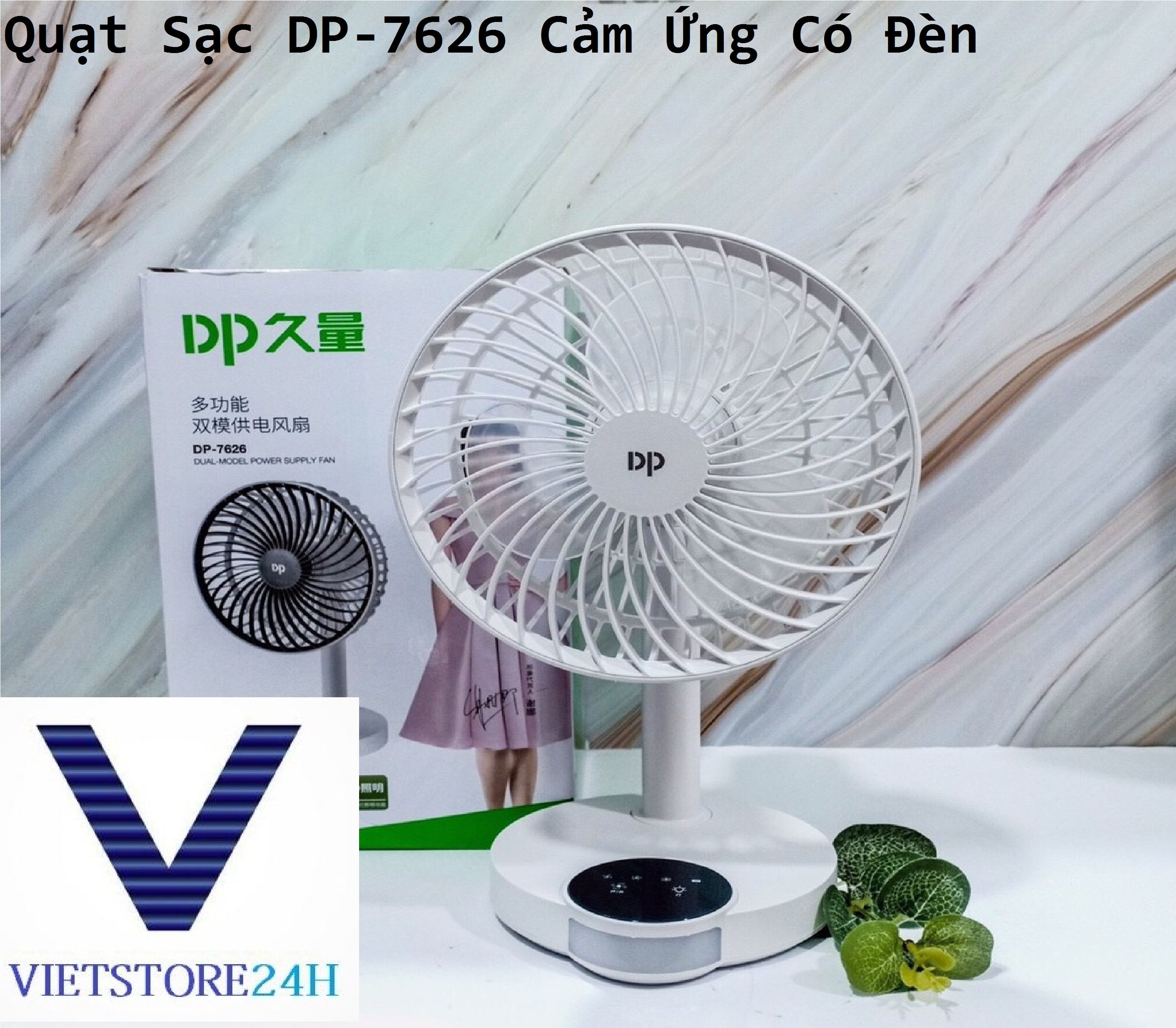 QUẠT SẠC TÍCH ĐIỆN CẢM ỨNG ĐÈN LED DP -7626 | GIA DỤNG MINH DUY