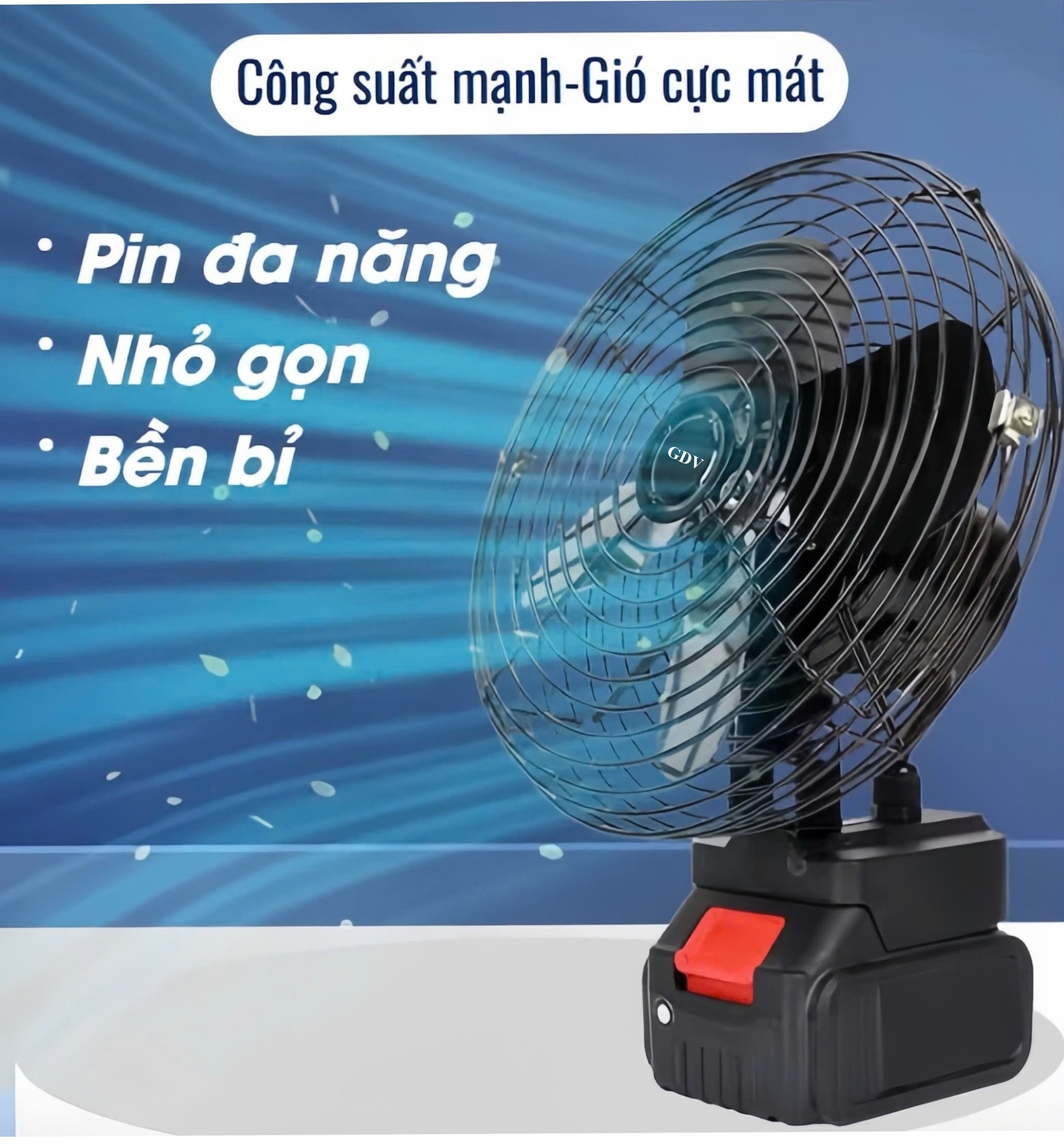 ✨Quạt Sắt Mini Sạc Tích Điện GDV Siêu Mát Dùng Chân Pin Phổ Thông Pin 10Cell - Hàng Chính Hãng