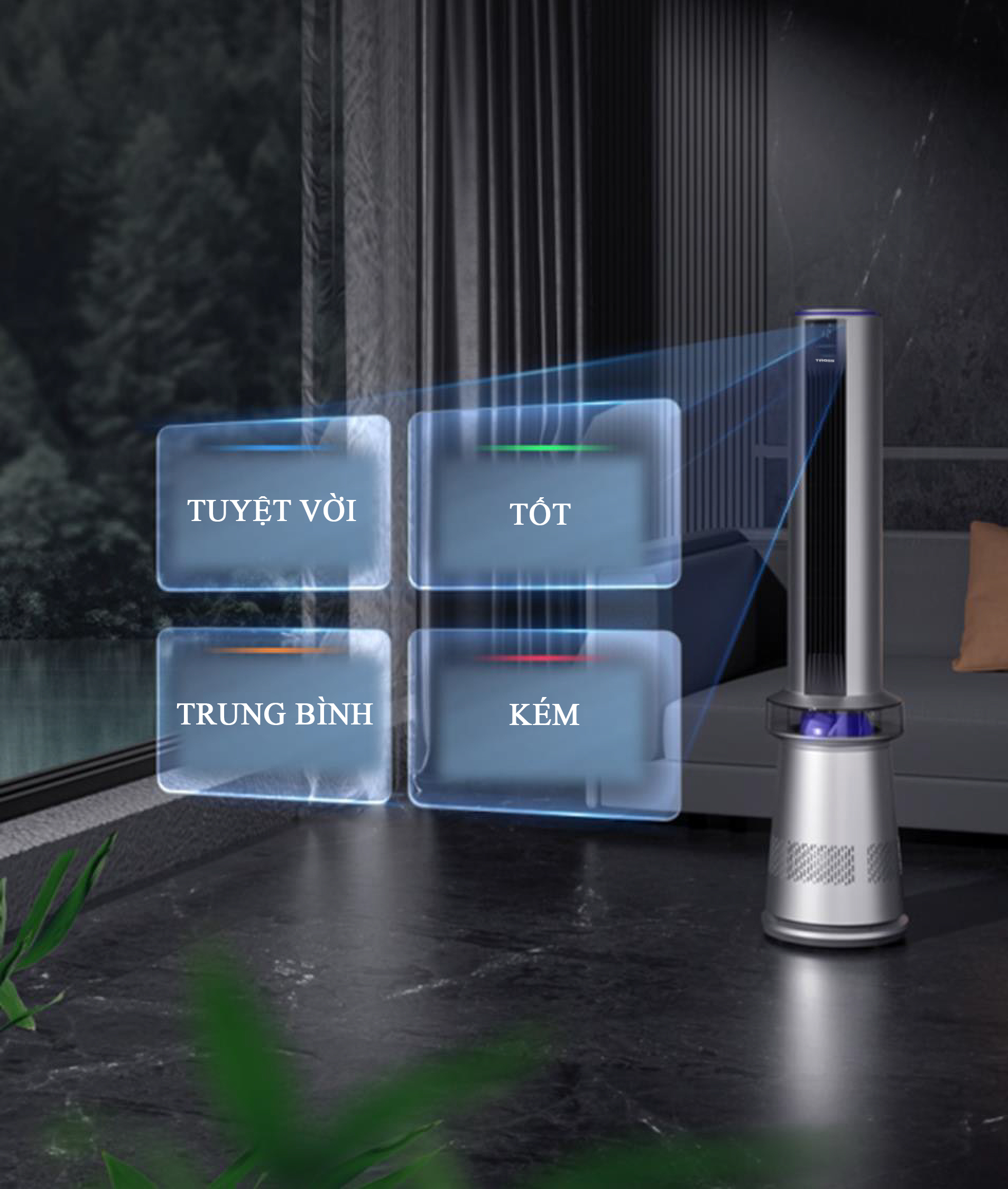 Quạt tháp kèm lọc không khí 2 trong 1 sử dụng bốn mùa.