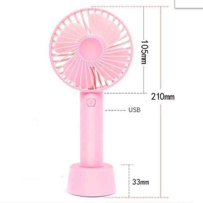 - Quạt được đi kèm 1 chân đế giúp trở thành 1 chiếc quạt để bàn học hoặc bàn văn phòng làm việc. Ngoài ra còn có 1 dây đeo giúp b mang theo quạt mini đi bên minh