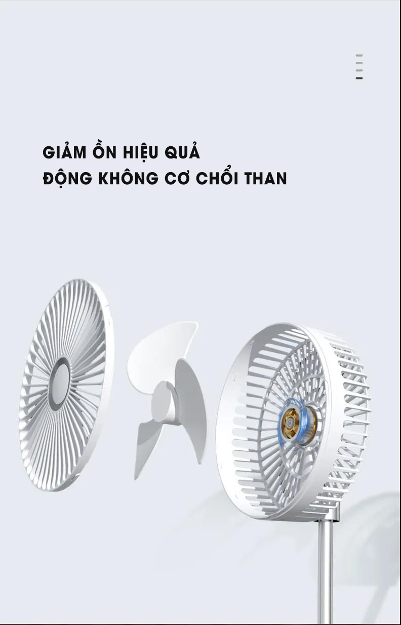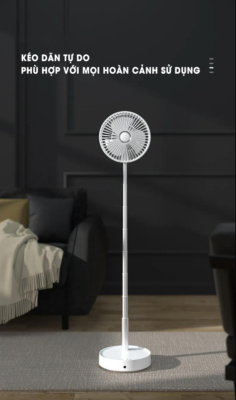 - Chiều cao linh động từ 37 – 93cm Chiếc quạt 3LIFE sở hữu kích thước nhỏ gọn với đường kính 20cm, chiều cao từ 37 – 93cm khi gấp gọn và kéo duỗi. Ngoài sự linh động và nhỏ gọn chiếc quạt này còn vô cùng nhẹ khi chỉ có trọng lượng 1,1 kg. Điều này cho phép người dùng dễ dàng di chuyển và mang theo đến nhiều nơi. Hoặc bạn cũng có thể sử dụng làm quạt bàn, quạt đứng, quạt sàn đáp ứng các nhu cầu khác nhau nhờ sự linh động này. Quạt 3LIFE được trang bị đa chế độ gió khác nhau giúp người dùng thoải mái lựa chọn hơn, phù hợp với nhiều hoàn cảnh khác nhau. Bao gồm Chế độ gió tự tự nhiên: thích hợp sử dụng khi phòng kín và cần những làn gió dễ chịu nhất Chế độ gió nhẹ Chế độ gió trung bình Chế độ gió mạnh Ngoài ra bạn cũng chọn được chế độ quay với góc siêu rộng 150 độ để làm mát ở một diện tích lớn hơn cho nhiều người. Cung cấp dung lượng pin 8000mAh Quạt FN31 sử dụng viên pin sạc 7200mah, hỗ trợ sử dụng trong khi sạc và khi đã sạc xong. Đầu vào điện áp thấp 5V USB an toàn khi sử dụng, quạt sẽ sạc đầy trong khoảng 12-24 giờ. Điều chỉnh linh hoạt dễ dàng vệ sinh Với quạt FN31 ngoài việc bạn có thể thay đổi chiều cao của quạt thì bạn cũng có thể điều chỉnh chiều và hướng gió cực kỳ linh hoạt bằng cách xoay trục 75° và xoay qua lại 180°. Đây quả thực là chiếc quạt lý tưởng cho gia đình, văn phòng và sử dụng ngoài trời. Bạn có thể sử dụng như một chiếc quạt bàn cá nhân hoặc một chiếc quạt đứng, nhỏ gọn dễ dàng mang theo, bạn có thể bỏ quạt vào ba lô hoặc ngăn kéo một cách dễ dàng. Khá thích hợp cho ký túc xá cá nhân, phòng ngủ, nhà bếp, văn phòng, lớp học, cắm trại, du lịch, câu cá,
