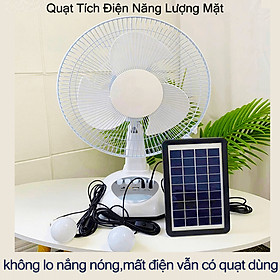 Quạt tích điện năng lượng mặt trời đa năng tích hợp cổng sạc ĐT, Tặng 2 bóng đèn - Giá 950k bao ship
