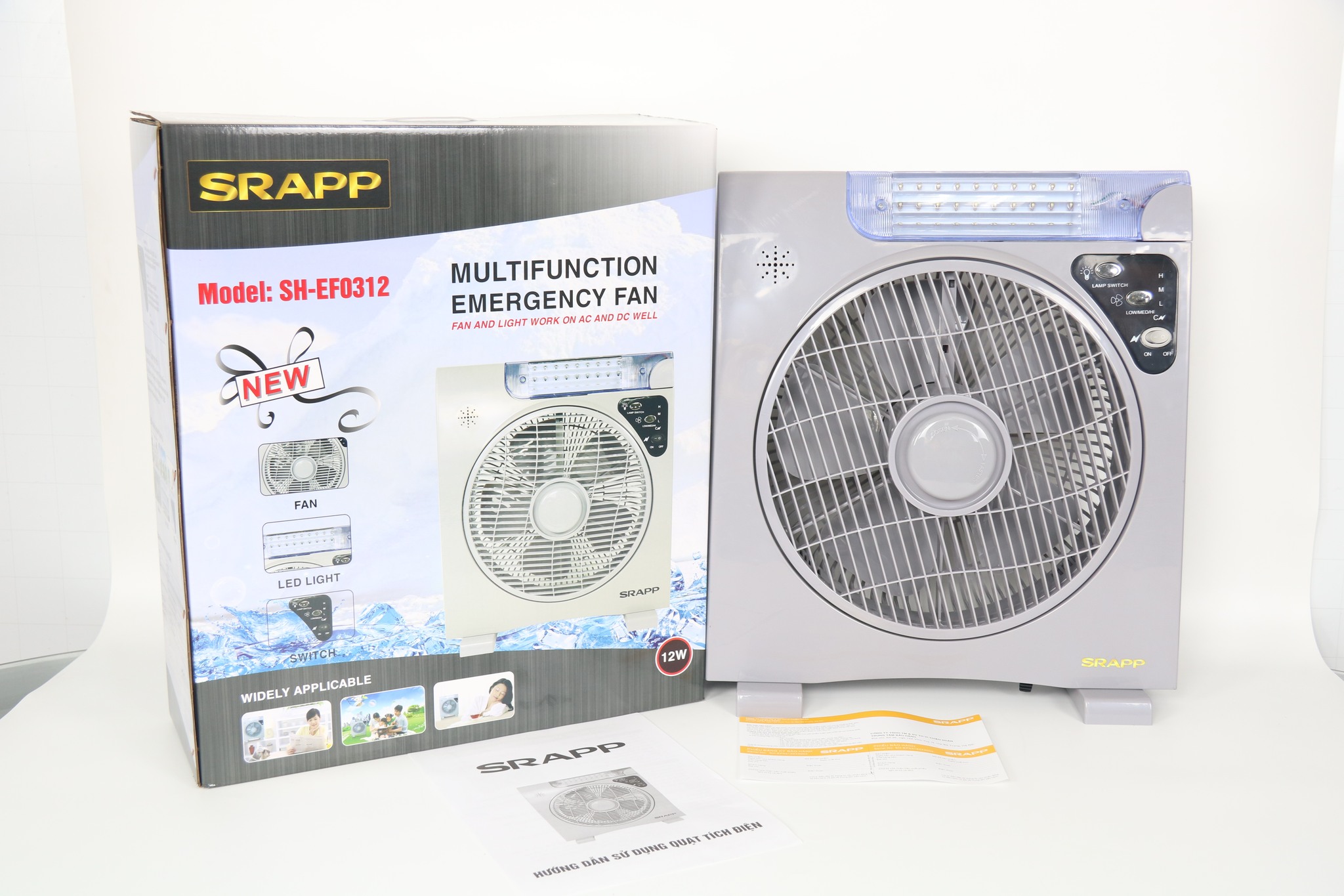 Quạt tích điện SRAPP có 2 acquy, thời gian sử dụng quạt 6 - 8h