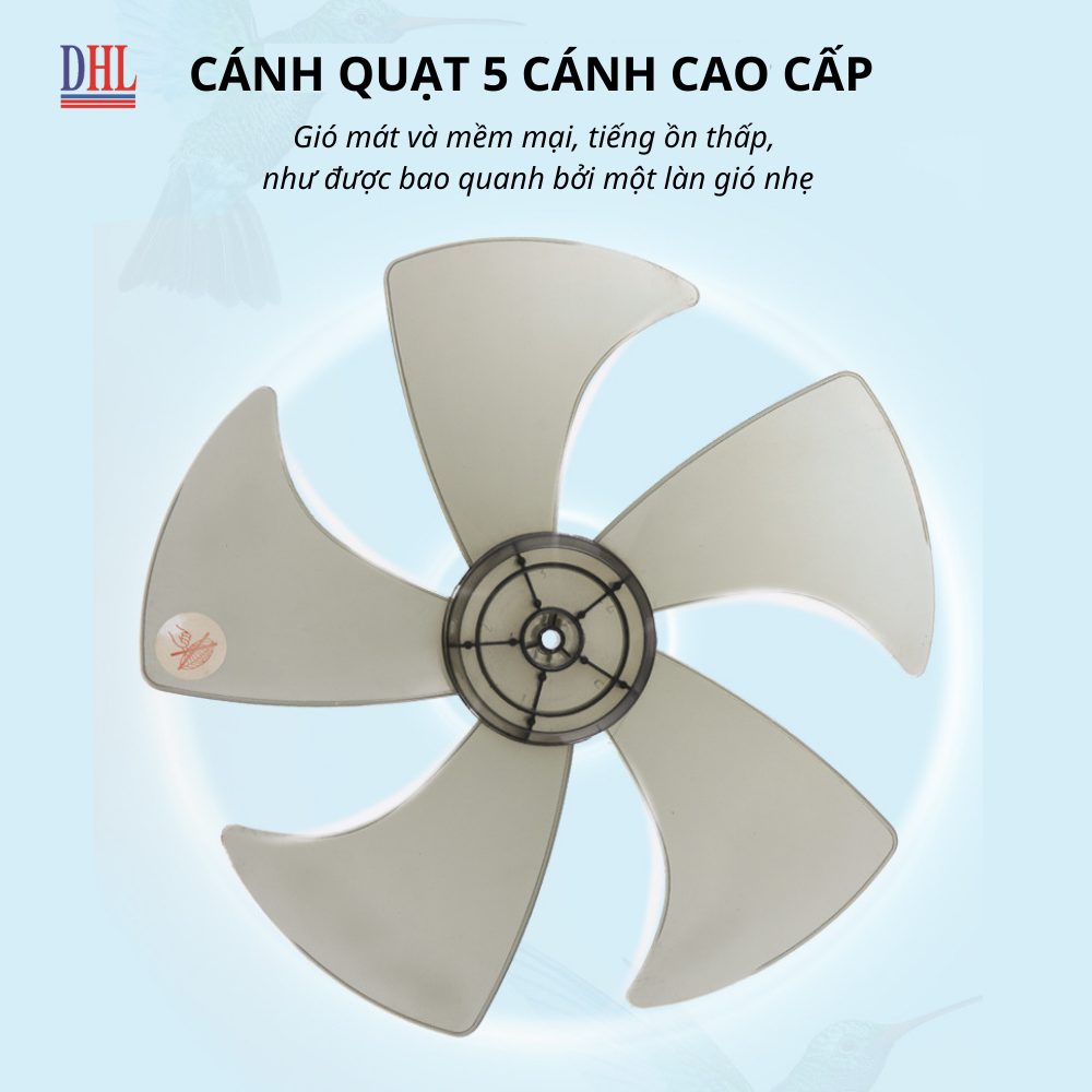 Quạt được vận hành với công suất 65W cùng 3 cấp độ gió Gồm 5 cánh quạt có độ sải cánh lớn, tạo nguồn gió mát Lồng quạt từ kim loại đan khít nhau, dễ
