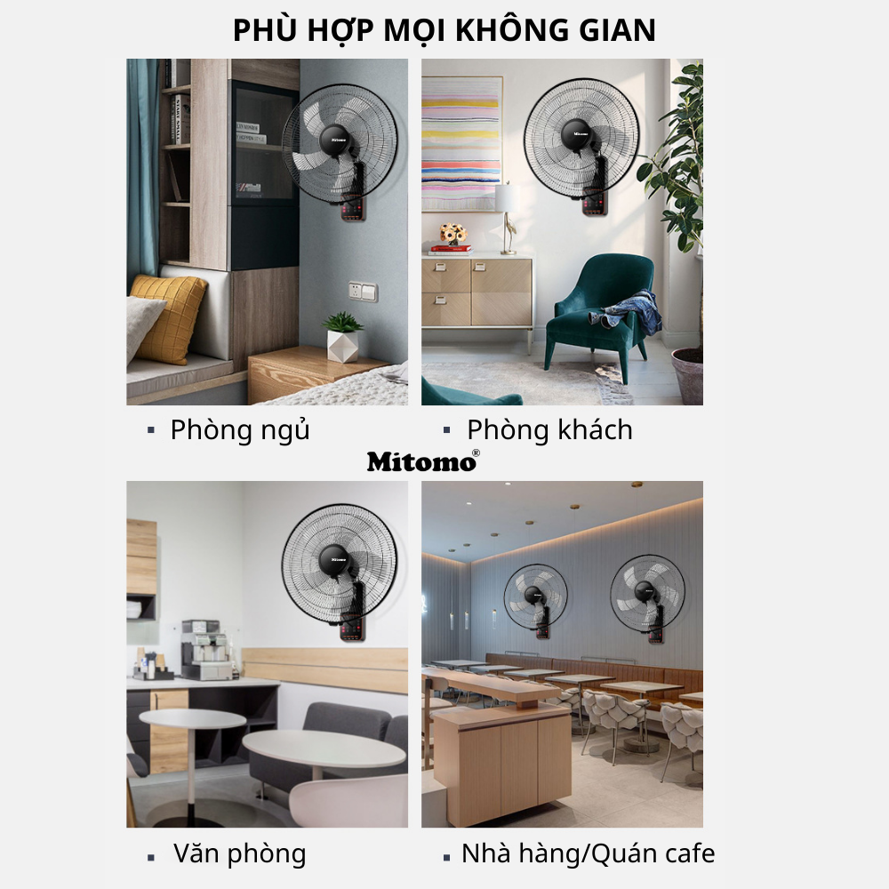 QUẠT TREO TƯỜNG MITOMO FTT-60AE - HÀNG CAO CẤP, BẢO HÀNH CHÍNH HÃNG 2 NĂM