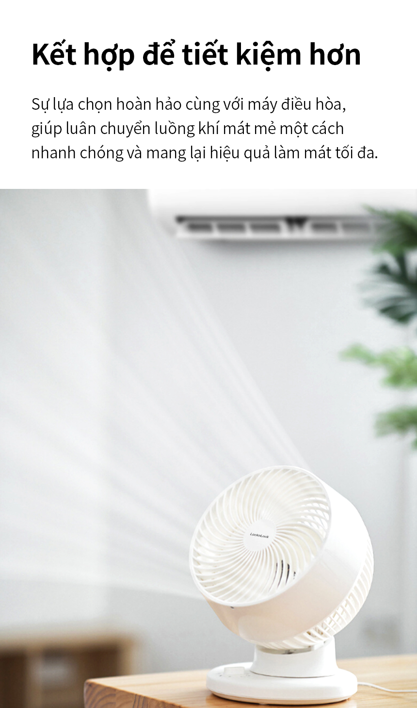 KẾT HỢP ĐỂ TIẾT KIỆM HƠN: Sự lựa chọn hoàn hảo cùng với máy điều hòa, giúp luân chuyển luồng khí mát mẻ một cách hiệu quả và mang lại hiệu quả làm mát tối đa.