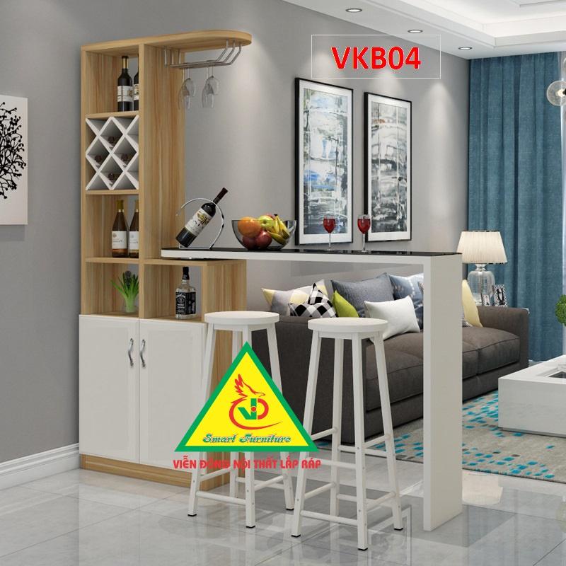 Quầy bar mini gỗ tối ưu không gian trong bếp nhỏ Tận dụng quầy bar mini gỗ làm vách ngăn Nếu bạn sống trong căn hộ chung cư hay nhà ống hẹp thì chắc hẳn sẽ nhận thấy diện tích không đủ để phân chia thành các phòng riêng. Vì vậy vách ngăn thường được sử dụng.