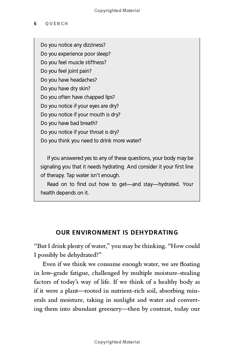 Based on breakthrough new science in the field of hydration, Quench debunks many popular myths about "getting enough water" and offers a revolutionary five-day jump start plan that shows how better hydration can reduce or eliminate ailments like chronic headaches, weight gain, gut pain, and even autoimmune conditions.