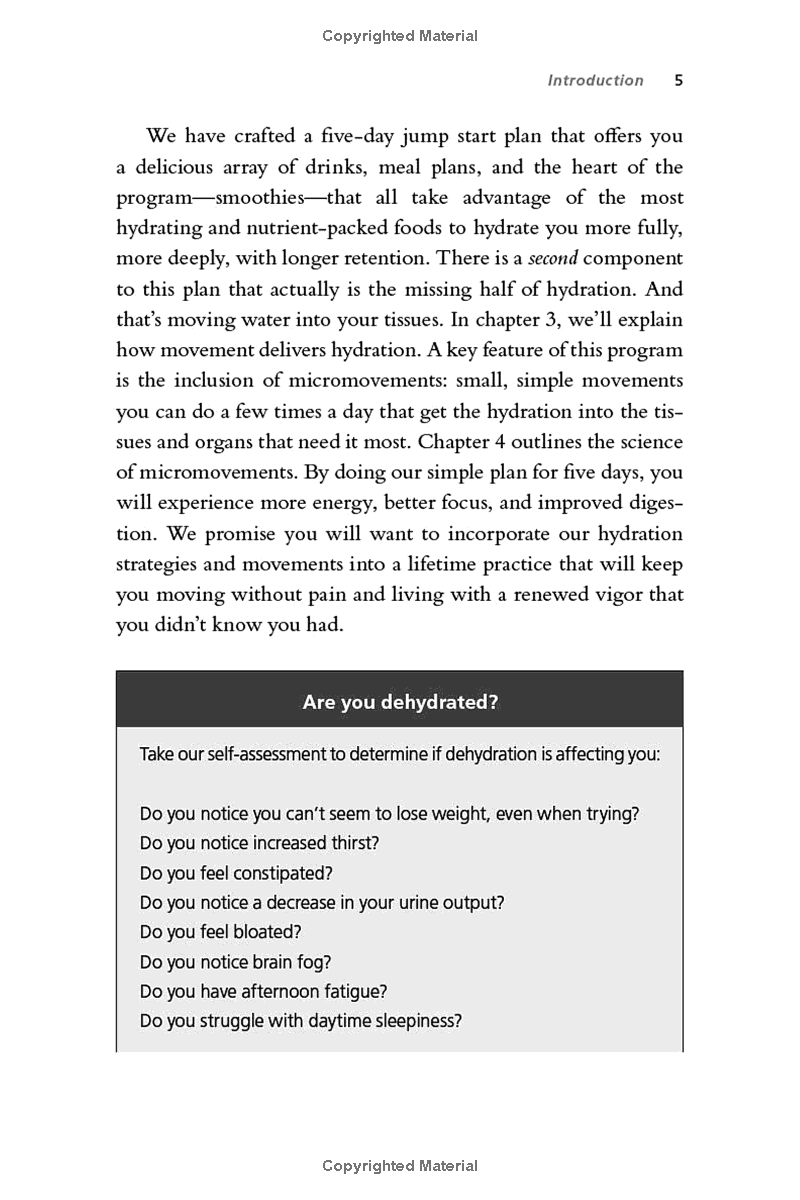Based on groundbreaking science from the University of Washington's Pollack Water Lab and other research, Quench offers a five-day jump start plan: hydrating meal plans and the heart of the program, smoothies and elixirs using the most hydrating and nutrient-packed plants. Another unique feature of their approach is micro-movements -- small, simple movements you can make a few times a day that will move water through your fascia, the connective tissue responsible for hydrating our bodies. You will experience more energy, focus, and better digestion within five days . . . then move onto the lifetime plan for continued improvements, even elimination of symptoms.