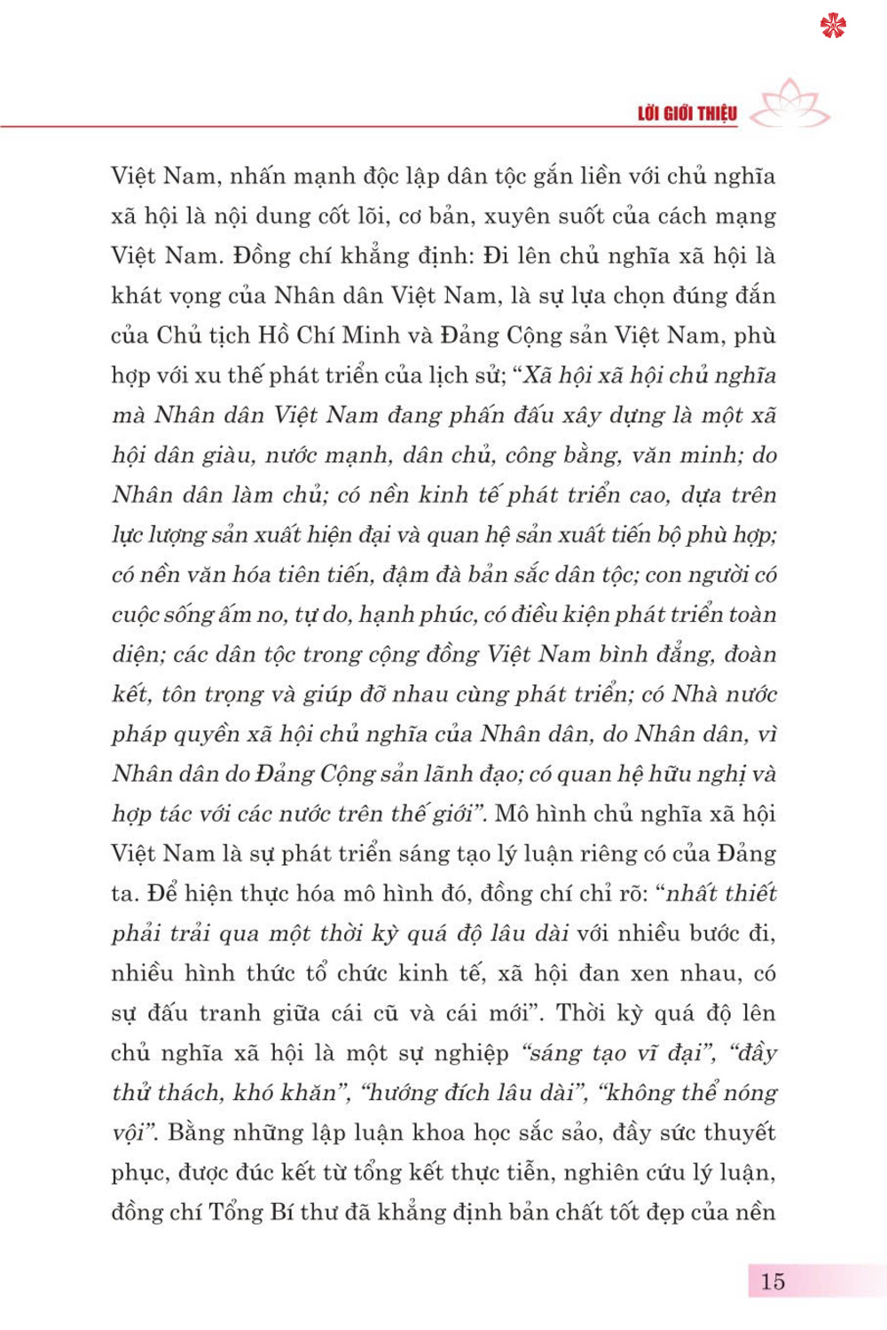 Cuốn sách tuyển chọn các bài nói, bài viết, bài phát biểu, trả lời phỏng vấn, thư, điệ của đồng chí Tổng Bí thư Nguyễn Phú Trọng, thể hiện tư tưởng nhất quán, xuyên suốt