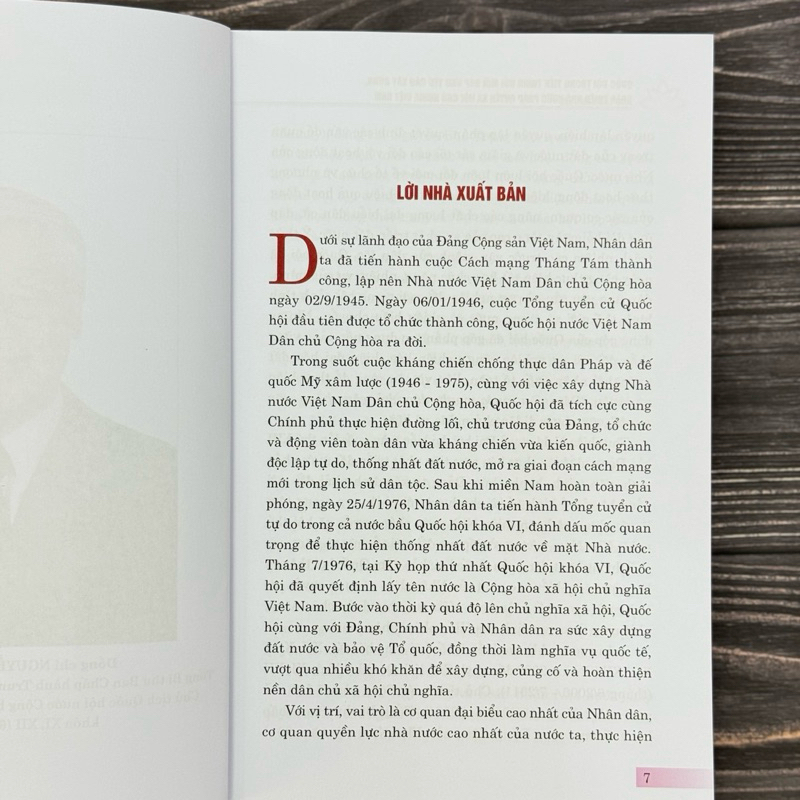 Cuốn sách tuyển chọn 95 bài viết, bài phát biểu và trả lời phỏng vấn của Đồng chí Tổng bí thư Nguyễn Phú Trọng về xây dựng và hoàn thiện nhà nước pháp quyền xã hội chủ nghĩa Việt Nam và Quốc hội Việt Nam; tuyển chọn hơn 100 bức ảnh tư liệu quý và 57 ý kiến tiêu biểu của các đồng chí nguyên lãnh đạo Đảng, Nhà nước, Đại biểu Quốc hội, Nhân dân và bạn bè quốc tế.